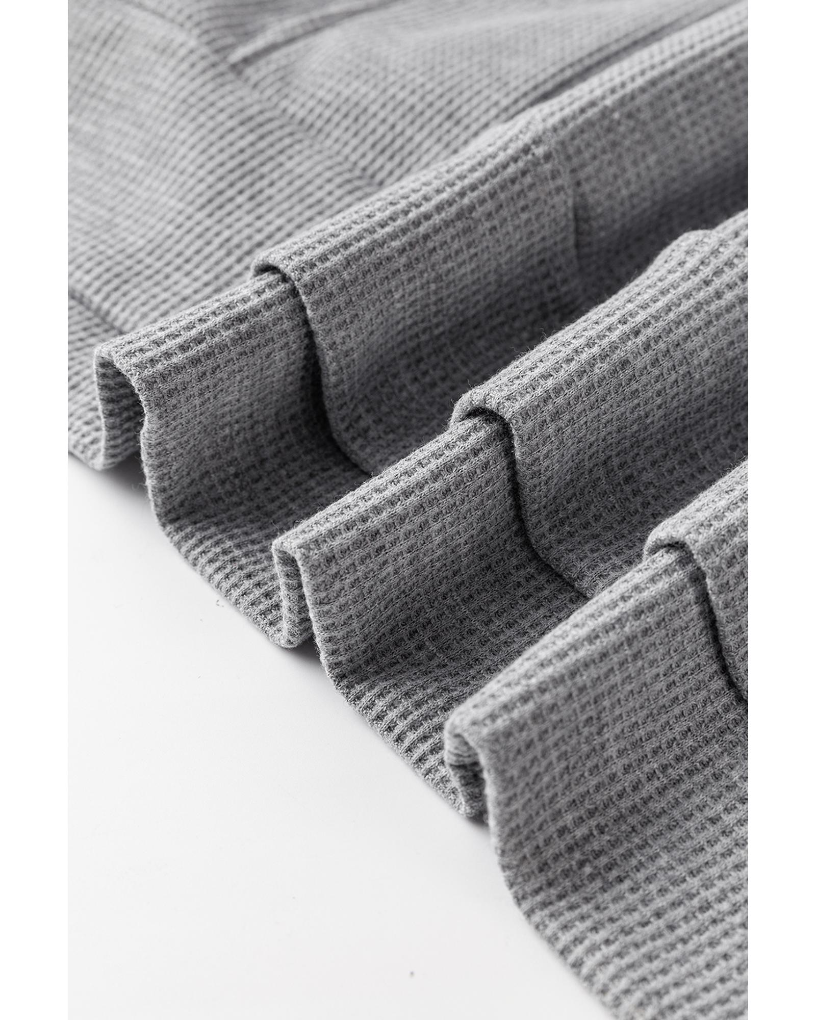 Gray Waffle Knit Fleece Lined High Low Oversized Hoodie – S