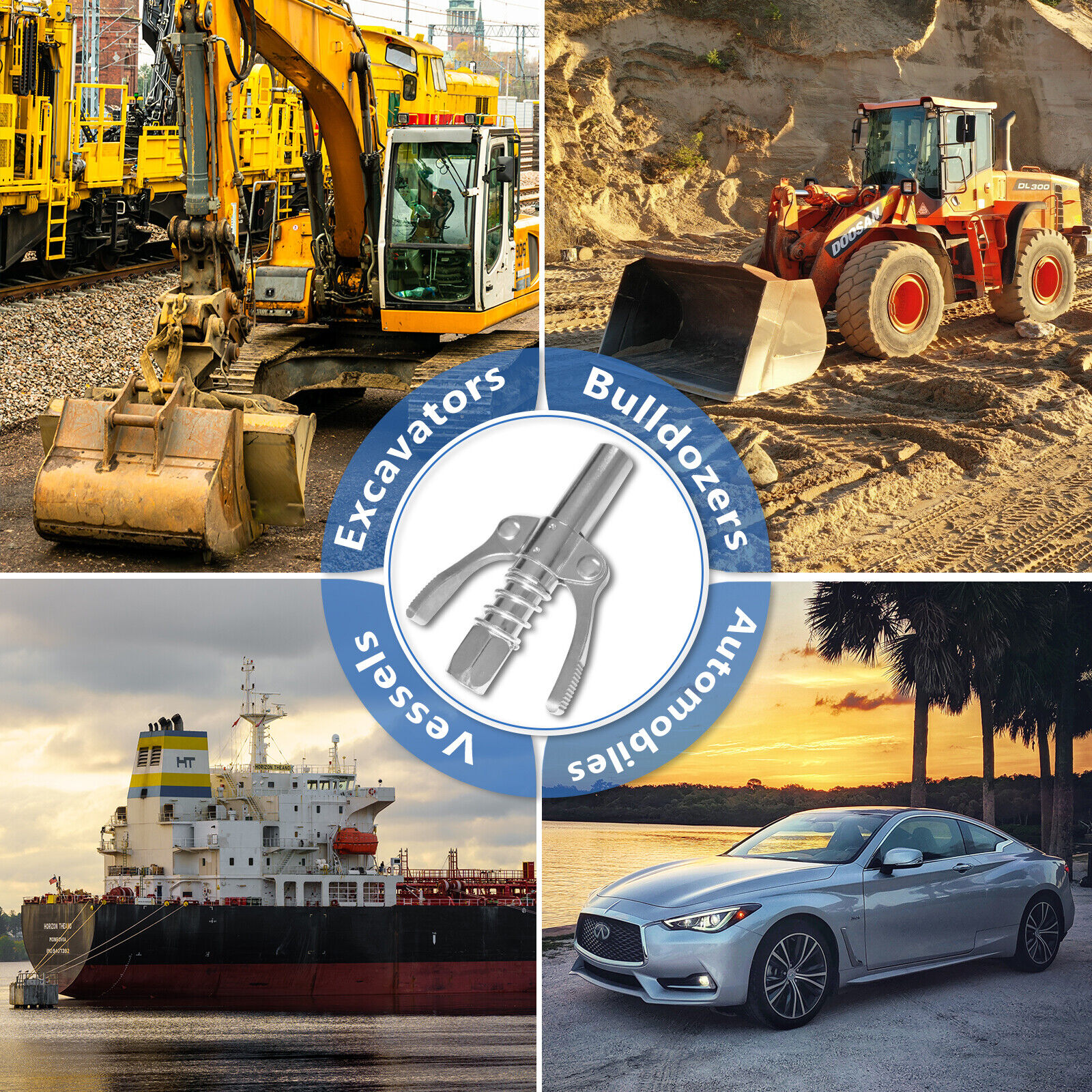 This grease gun coupler is designed for high-pressure applications, providing precise control and efficient grease delivery to hard-to-reach areas. It features a quick-release lock for easy attachment and detachment, ensuring convenience during use. The dual handles are ergonomically designed to reduce effort and prevent slipping, making lubrication tasks easier. Constructed from high-quality carbon steel with a galvanized surface, it offers durability and long-term performance. The leak-free design can withstand pressures up to 10,000 PSI, preventing grease wastage and mess. Compatible with various grease nipples including M6, M8, M10, M12, and M14, and featuring a 1/8″ NPT thread, it is suitable for use with trailers, tractors, trucks, UTVs, motorcycles, and boats.
