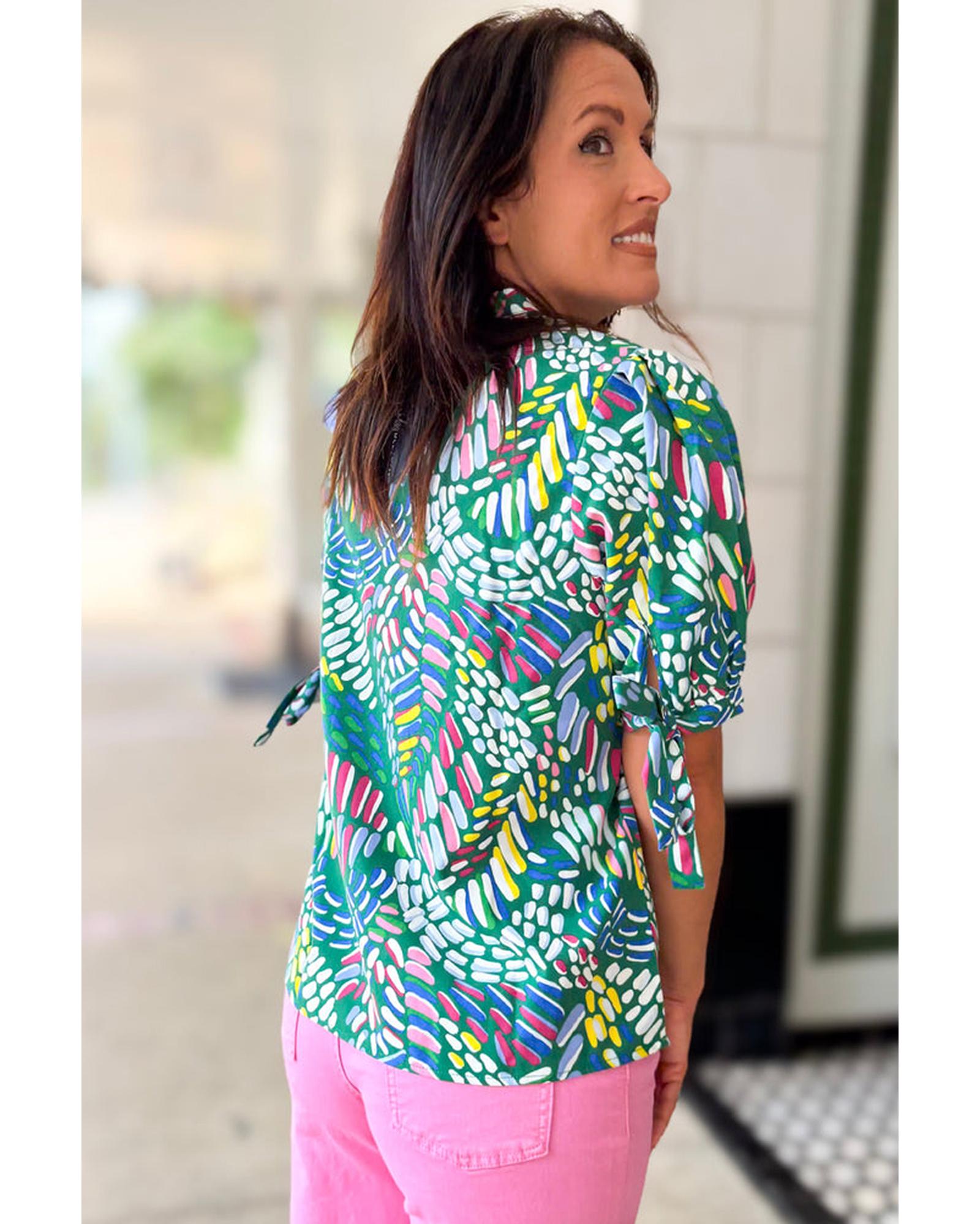 Green Abstract Print Knotted Short Sleeve Plus Size Blouse – 4X