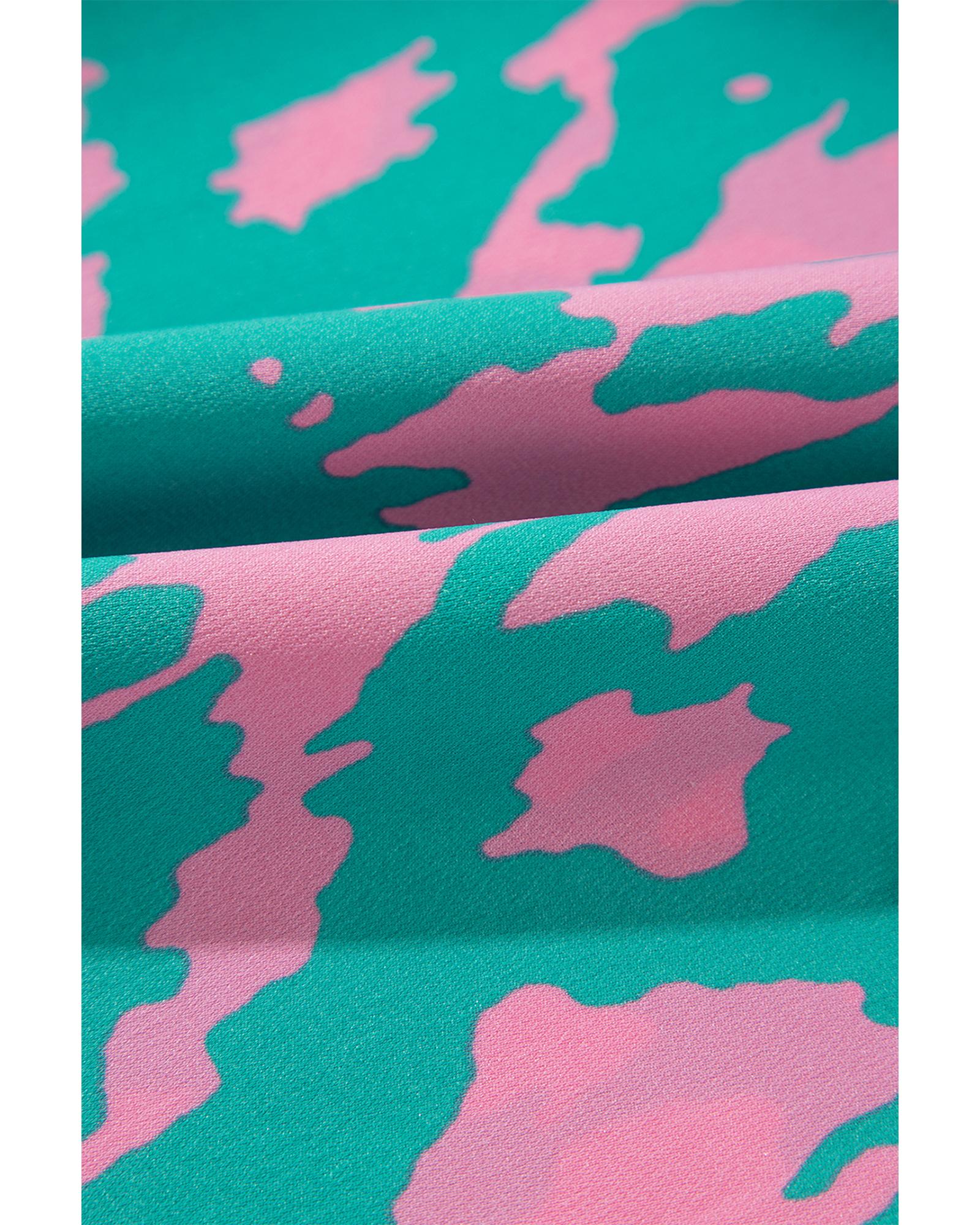 Green Abstract Print Puff Sleeve Tied Notched Neck Long Dress – M