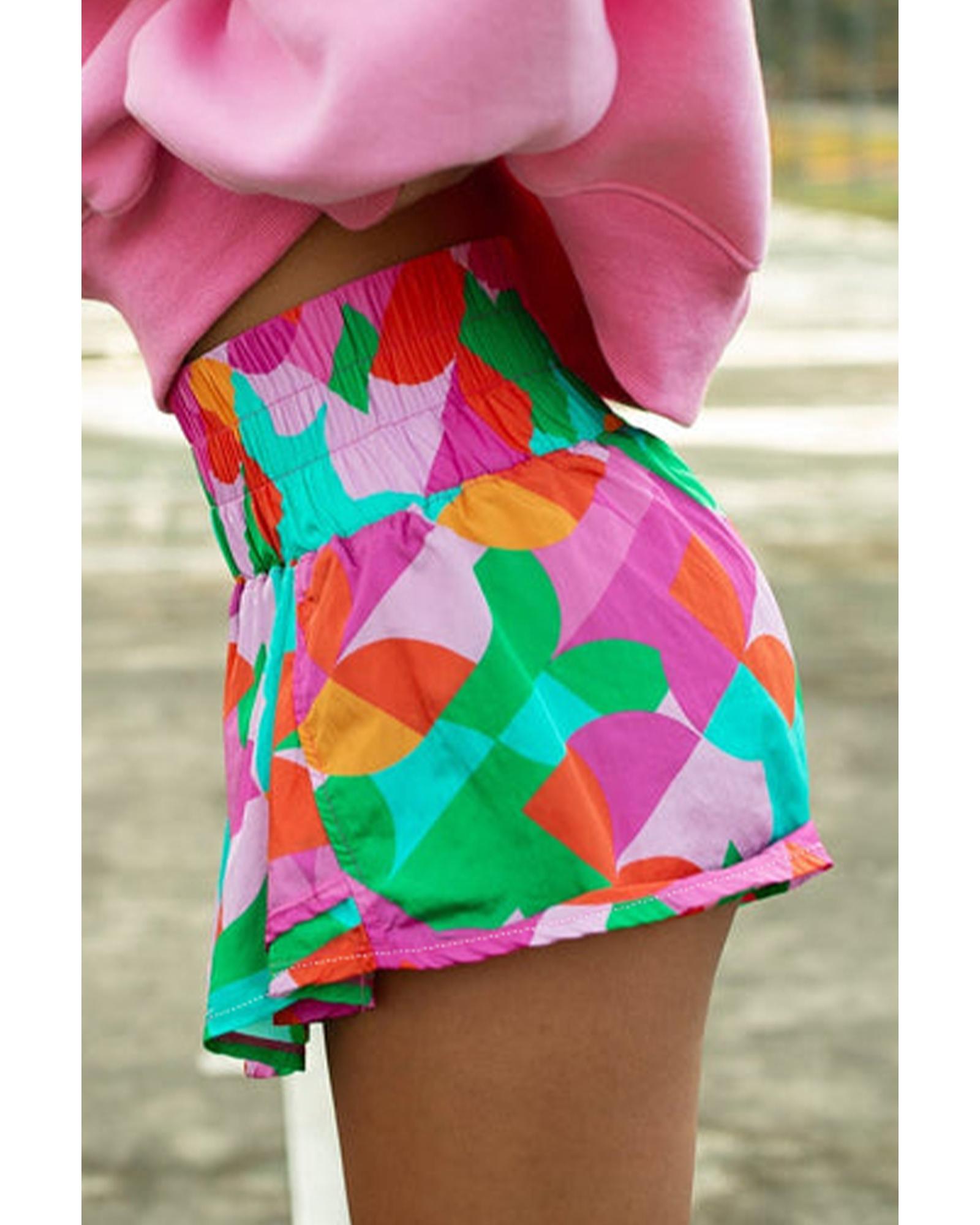 Green Abstract Print Smock Waist Casual Shorts – XL