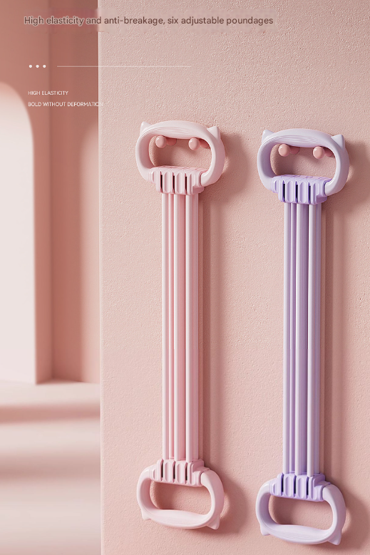 This adjustable resistance chest expander is designed for full-body workouts, helping users tone various muscle groups including shoulders, chest, back, arms, glutes, and legs. It features a charming design with cat ear handles, combining functionality with a fun aesthetic. Made from high-quality materials, it ensures safety and durability during exercise sessions.