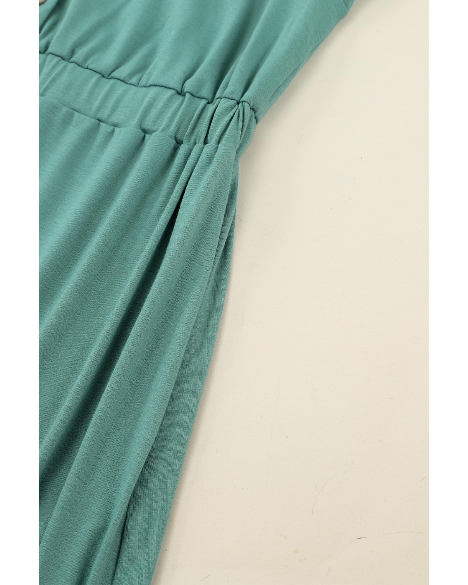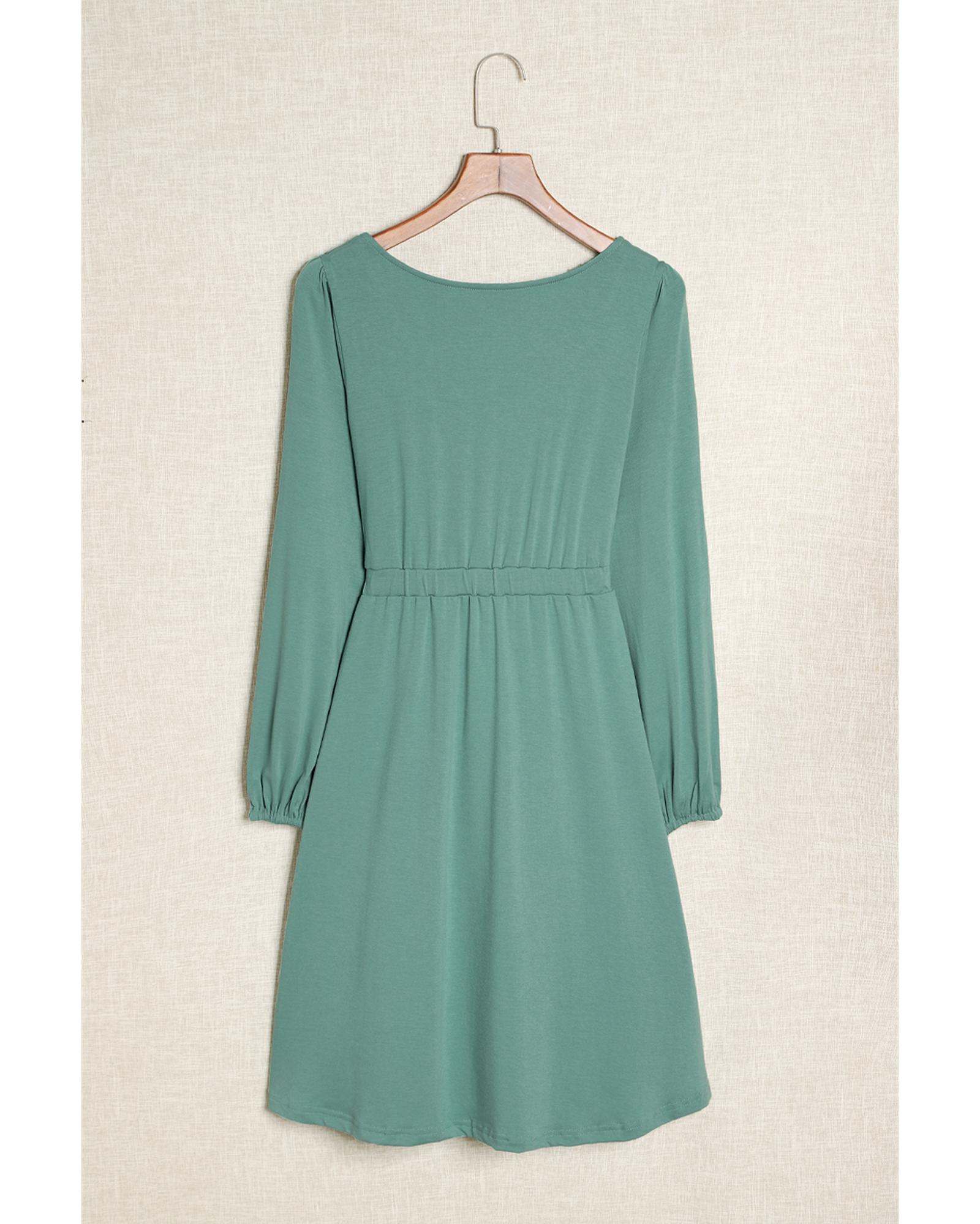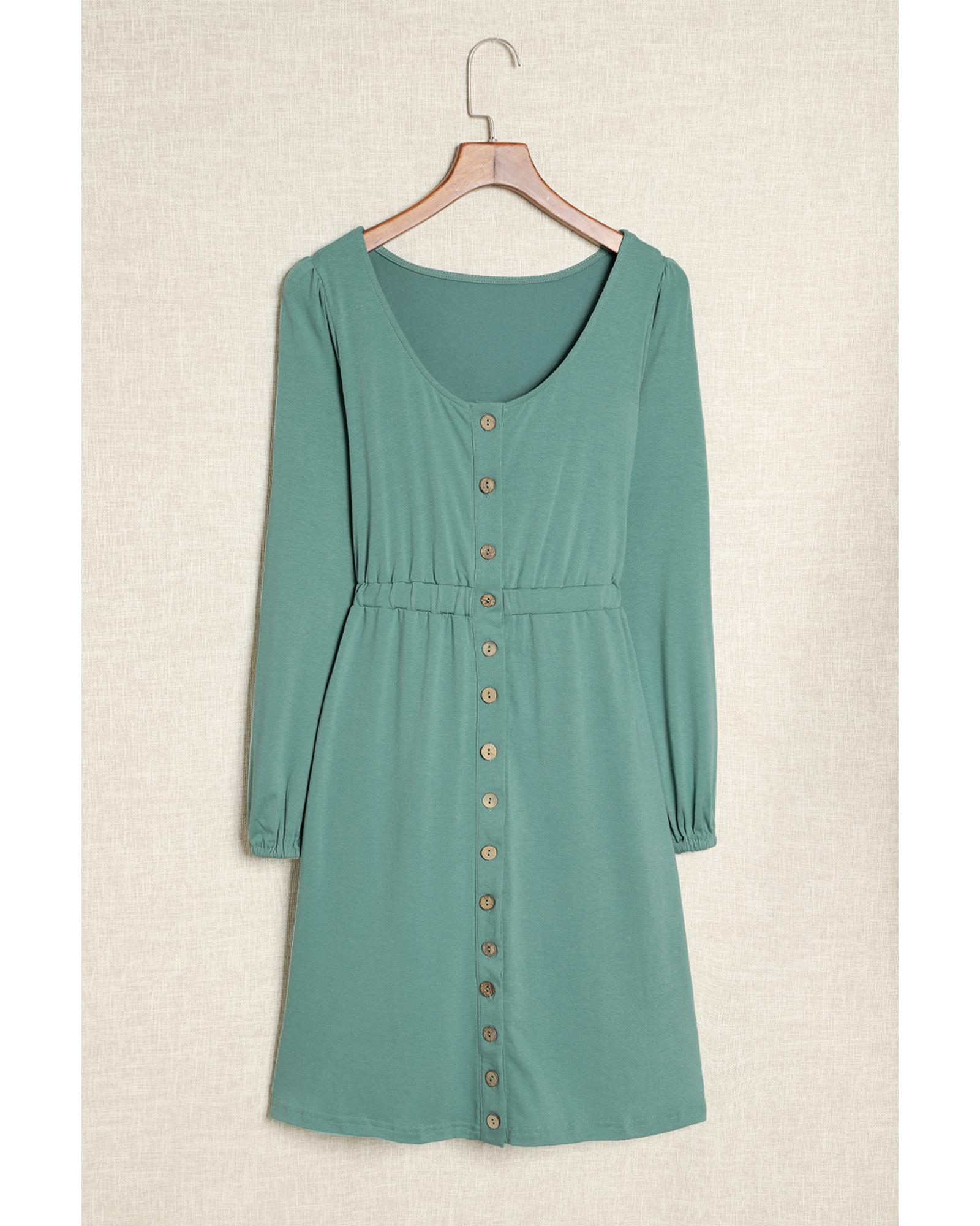 Green Button Up High Waist Long Sleeve Dress – S