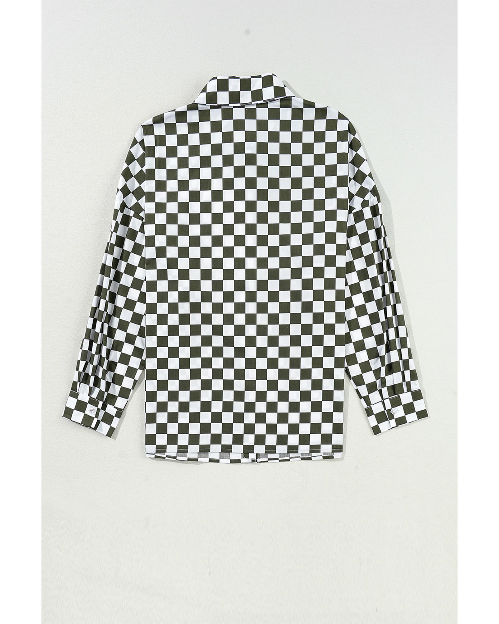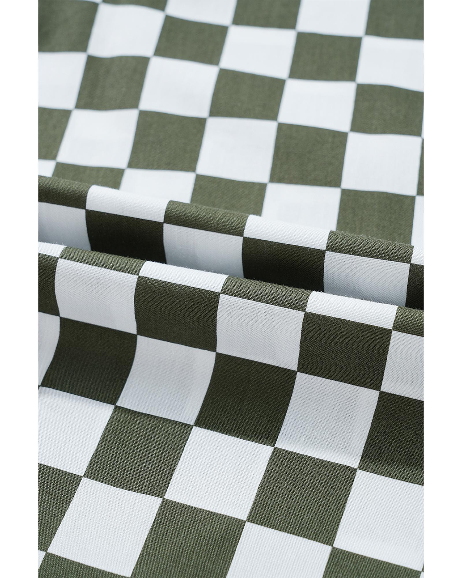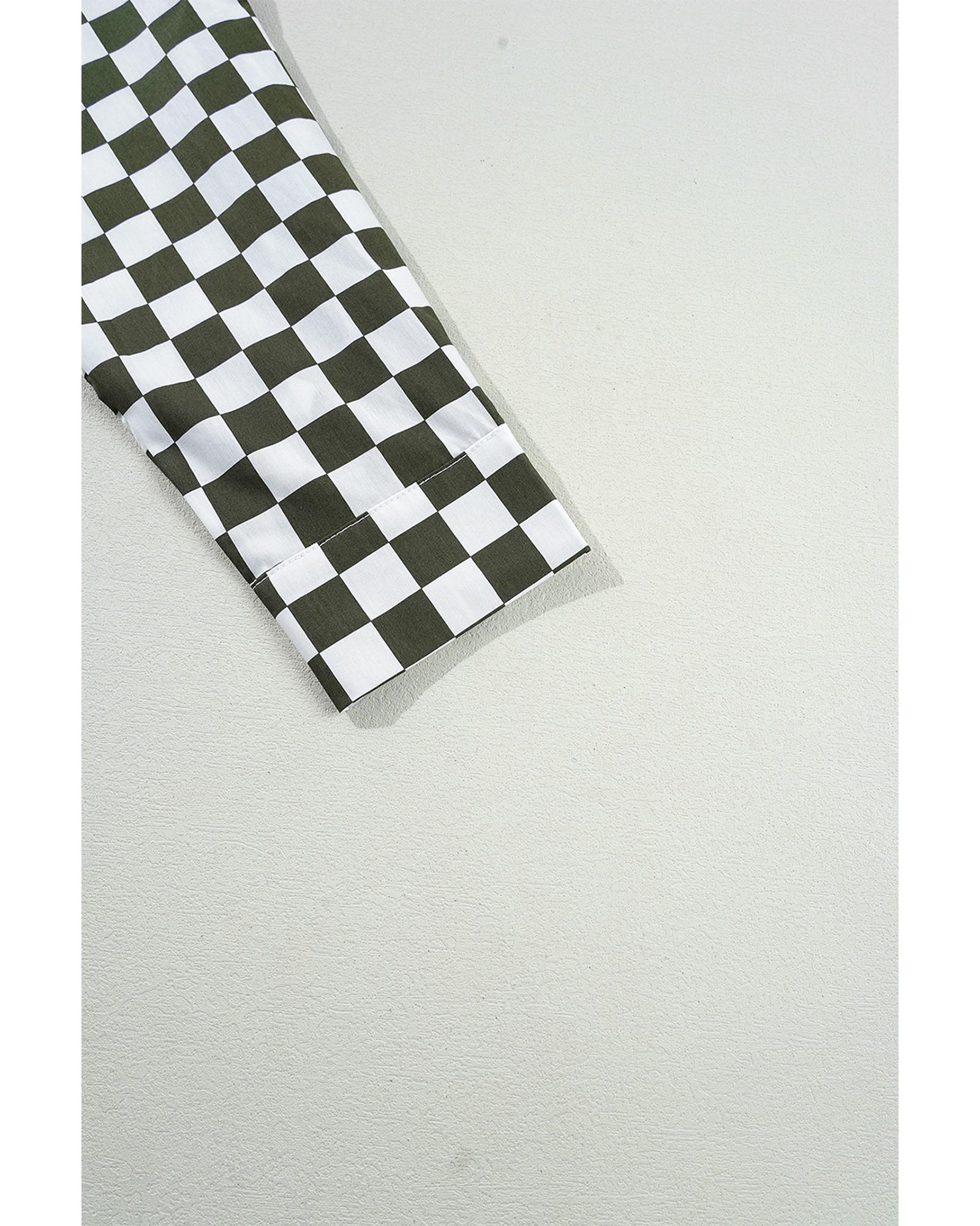Green Checkerboard Printed Drop Shoulder Loose Casual Shirt – XL