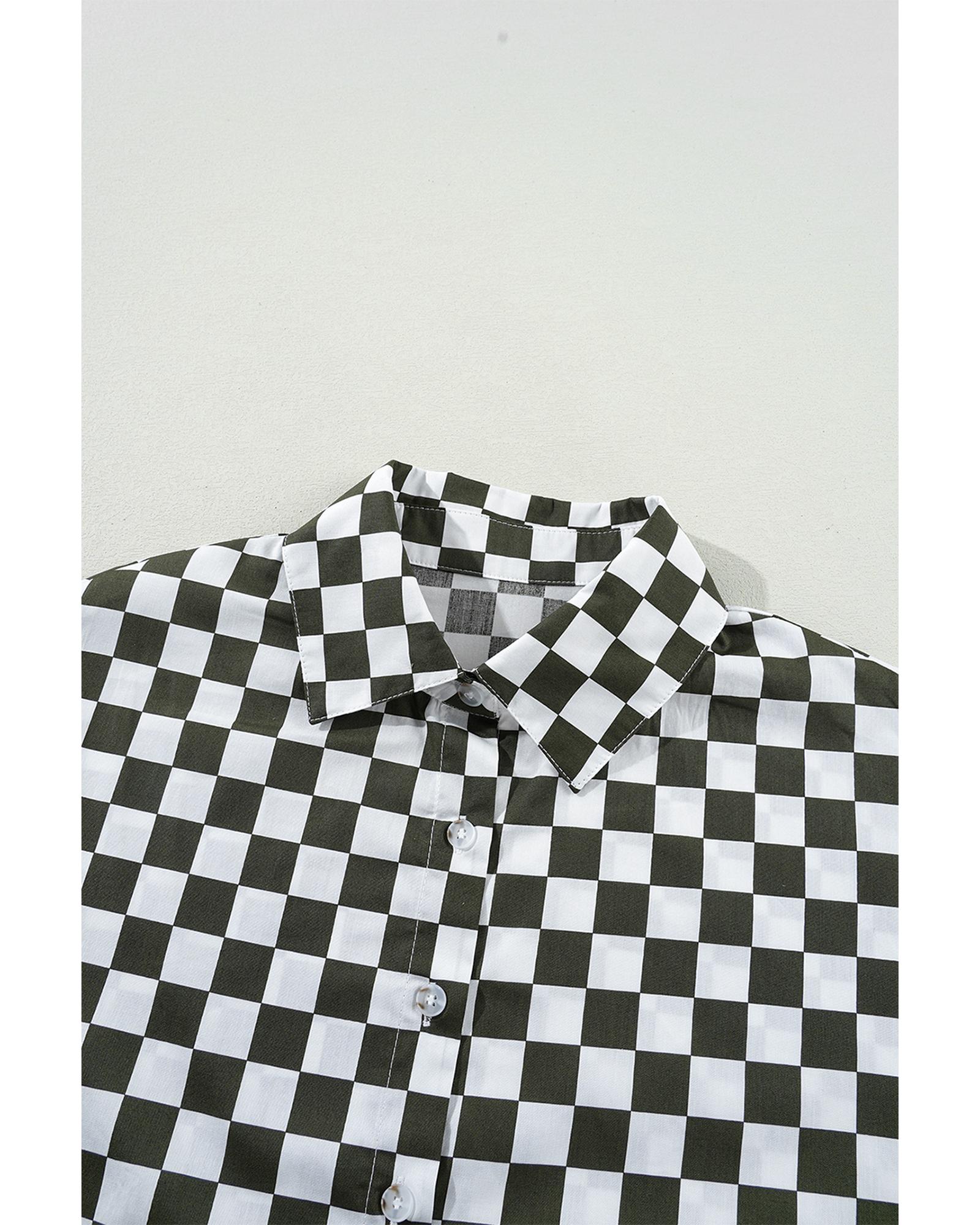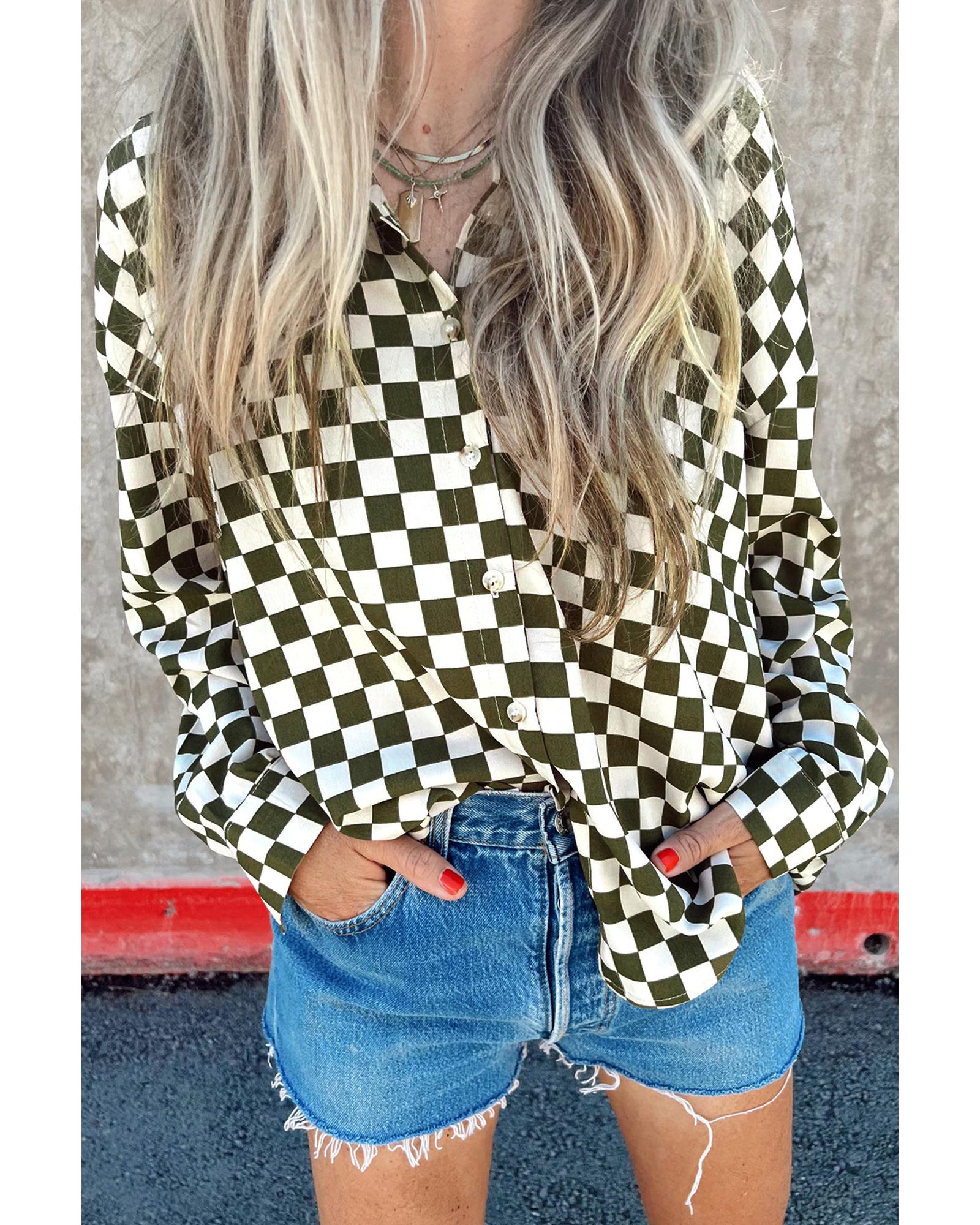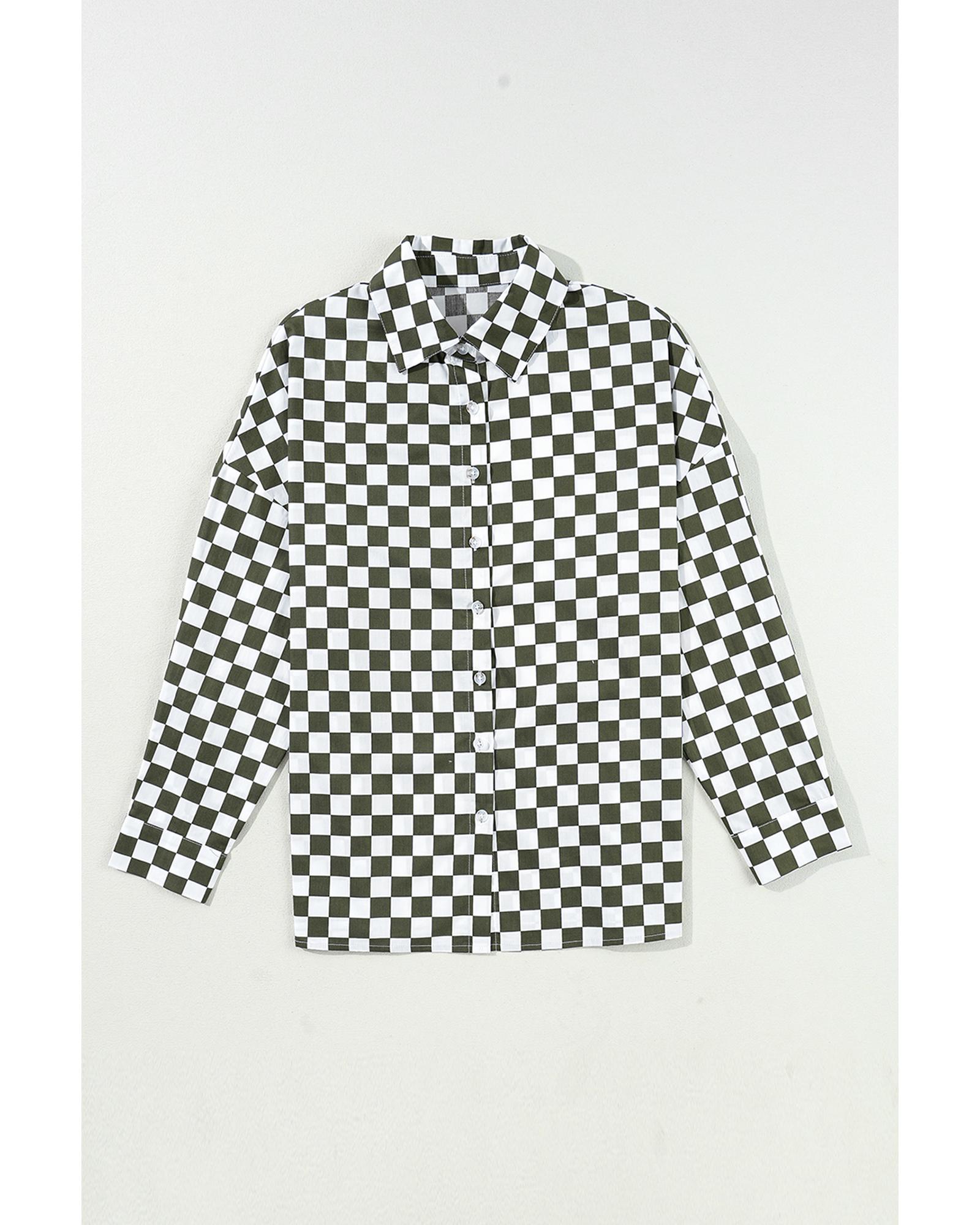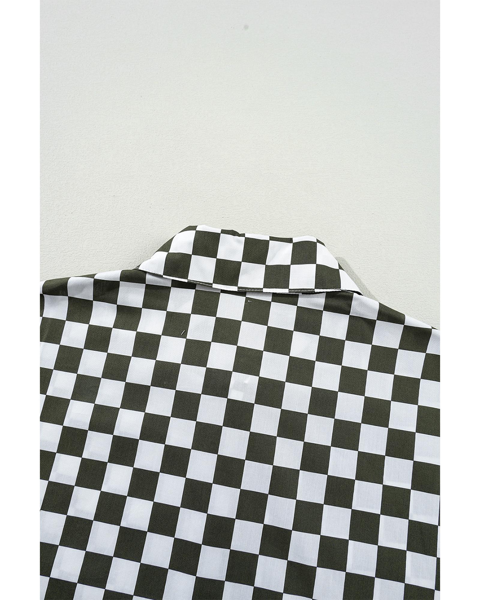 Green Checkerboard Printed Drop Shoulder Loose Casual Shirt – XL