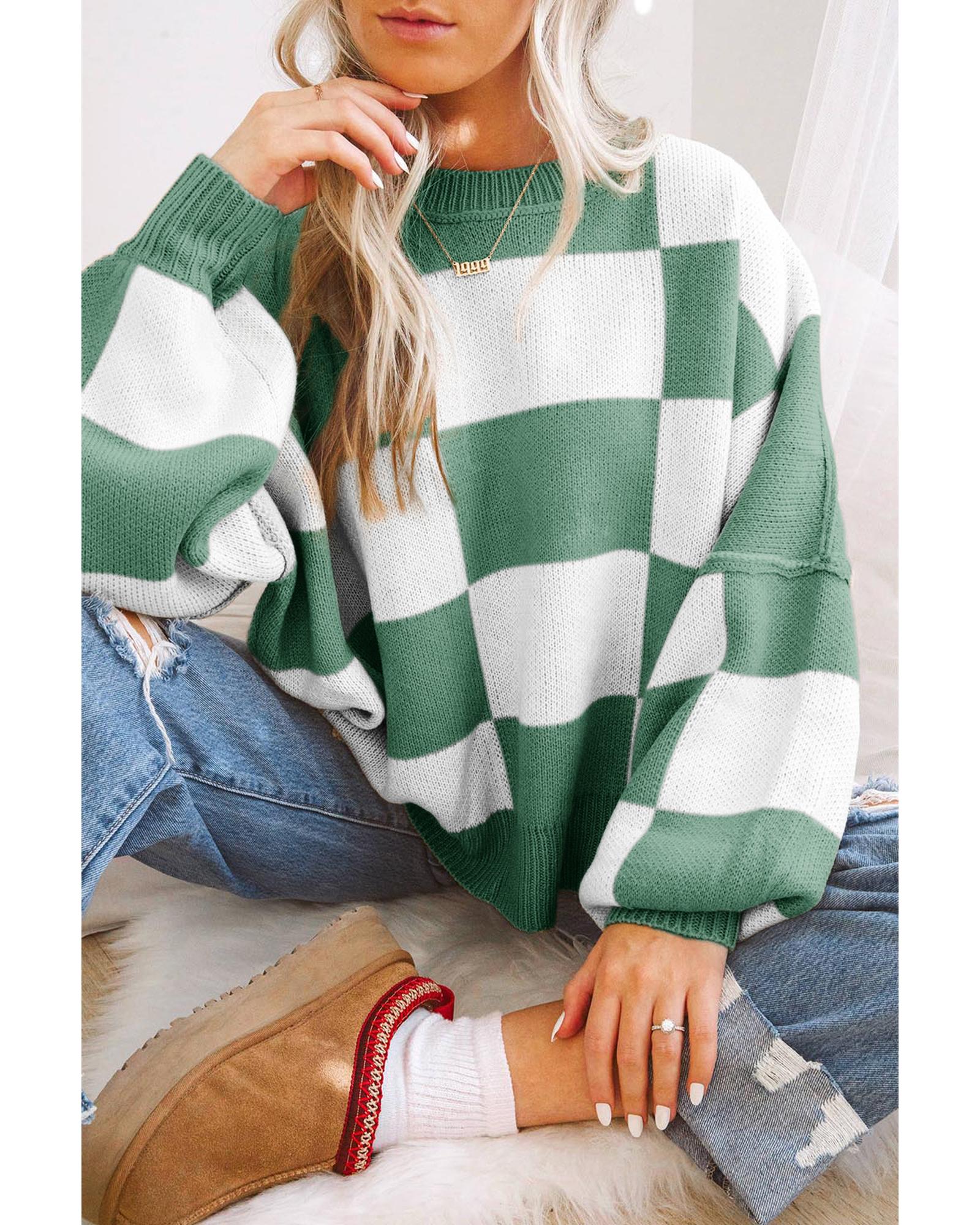 • 1 x Green Checkered Bishop Sleeve Sweater