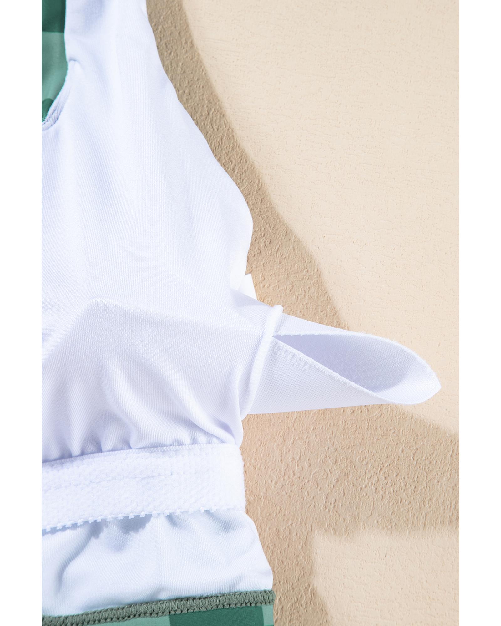 Green Checkered Print Square Neck Cropped Swim Top – 2XL