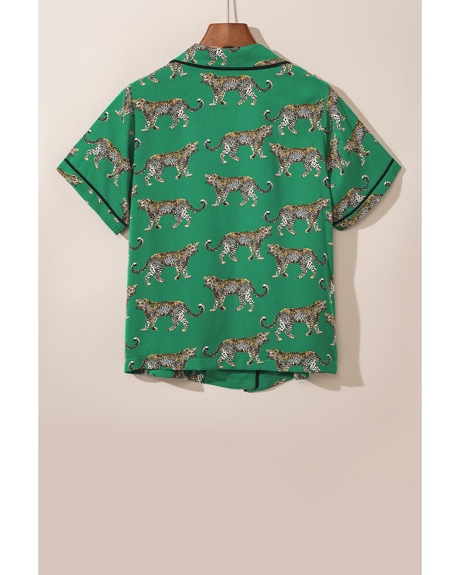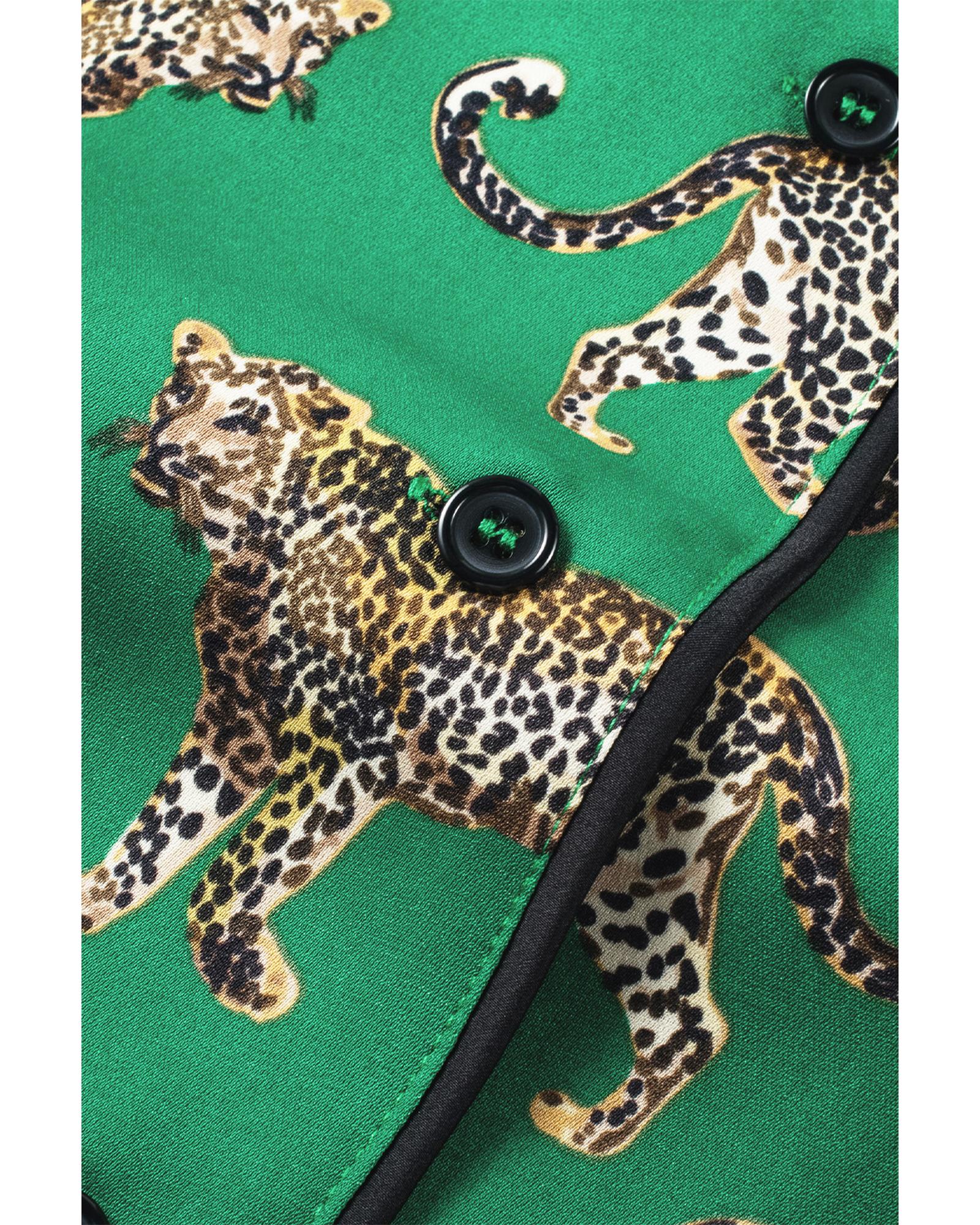 Green Cheetah Print Short Sleeve Shirt and Pants Pajama Set – L