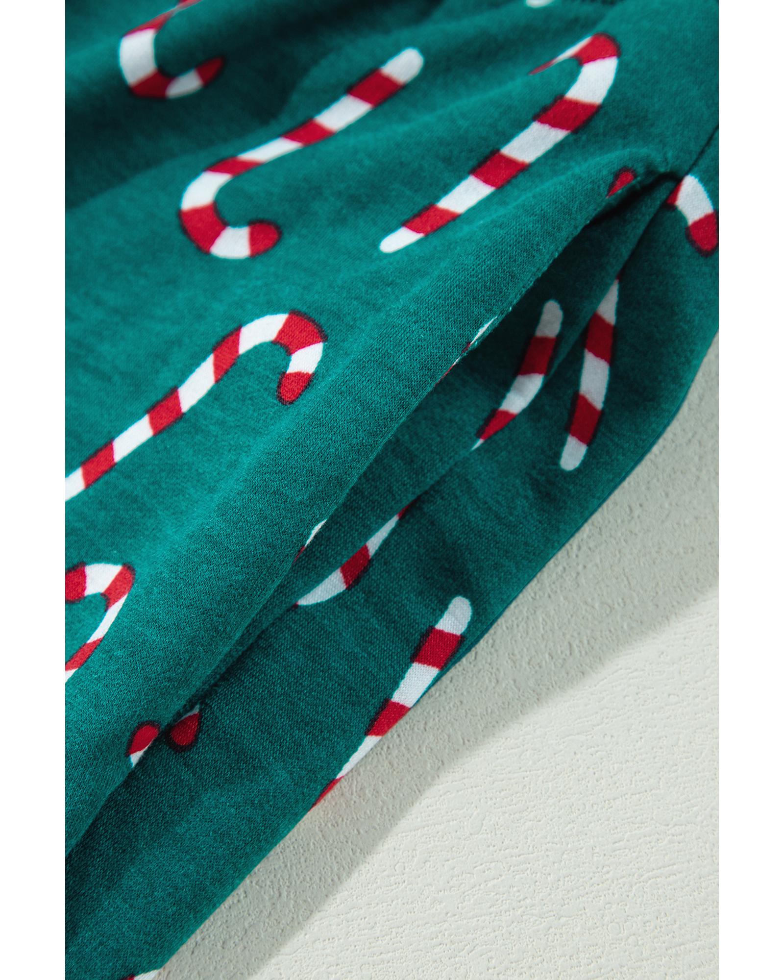 Green Christmas Candy Cane Printed Top and Pants Lounge Set – S