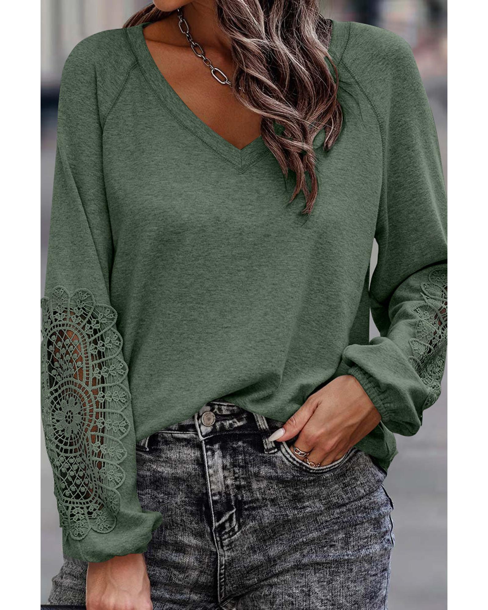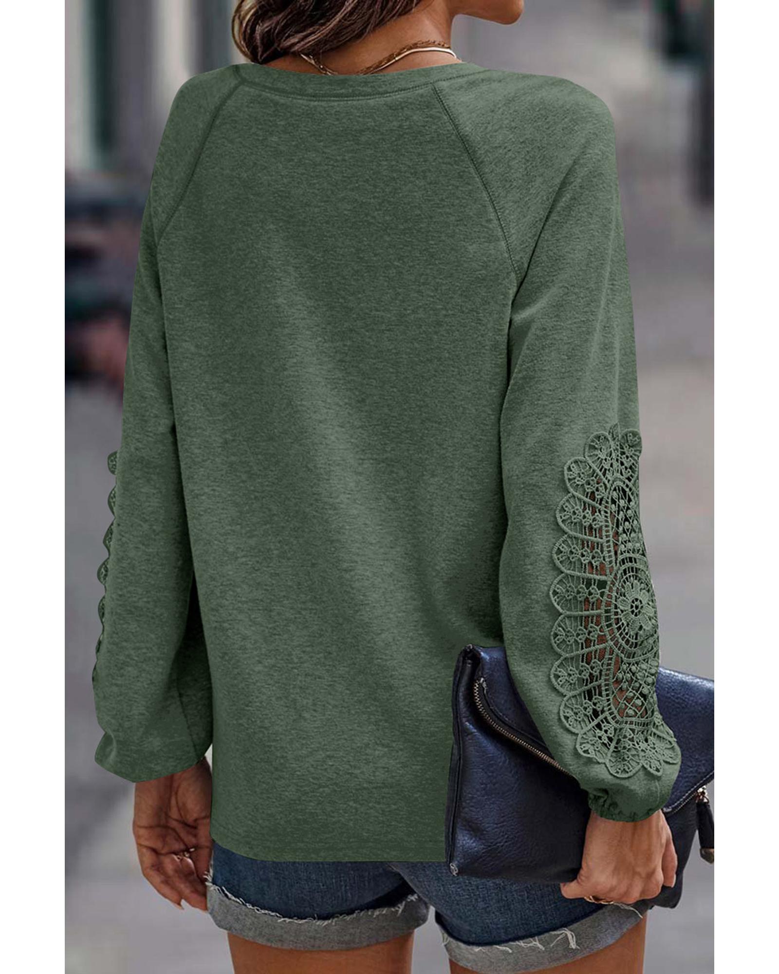 Green Crochet Lace Patch Raglan Sleeve Top – S