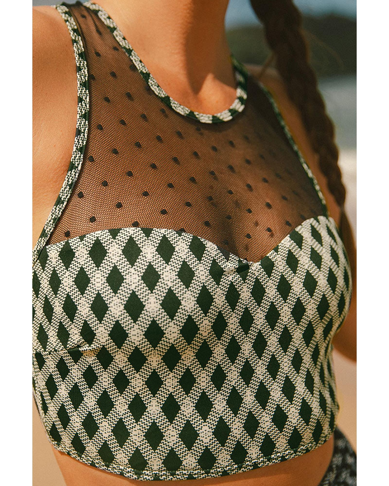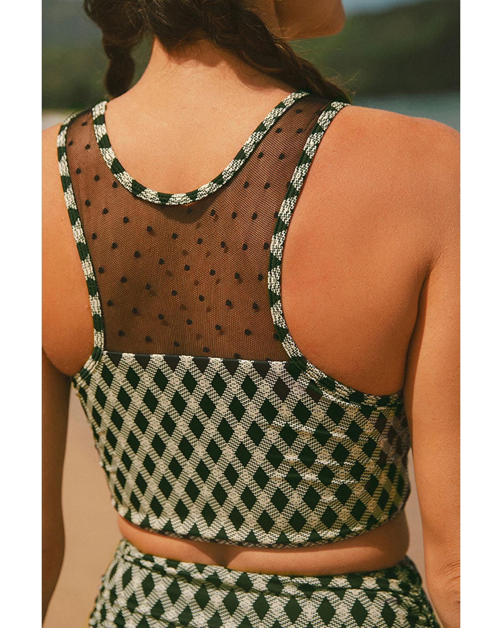 Green Dotted Mesh Plaid Patchwork High Waisted Bikini – 2XL