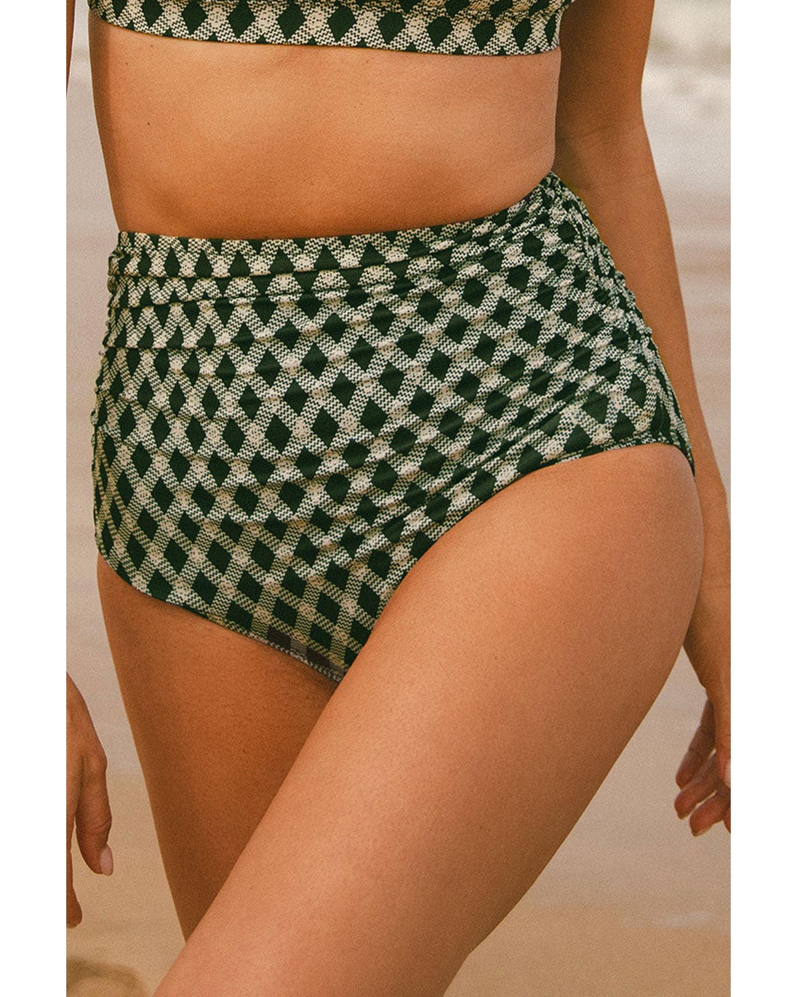 Green Dotted Mesh Plaid Patchwork High Waisted Bikini – XL