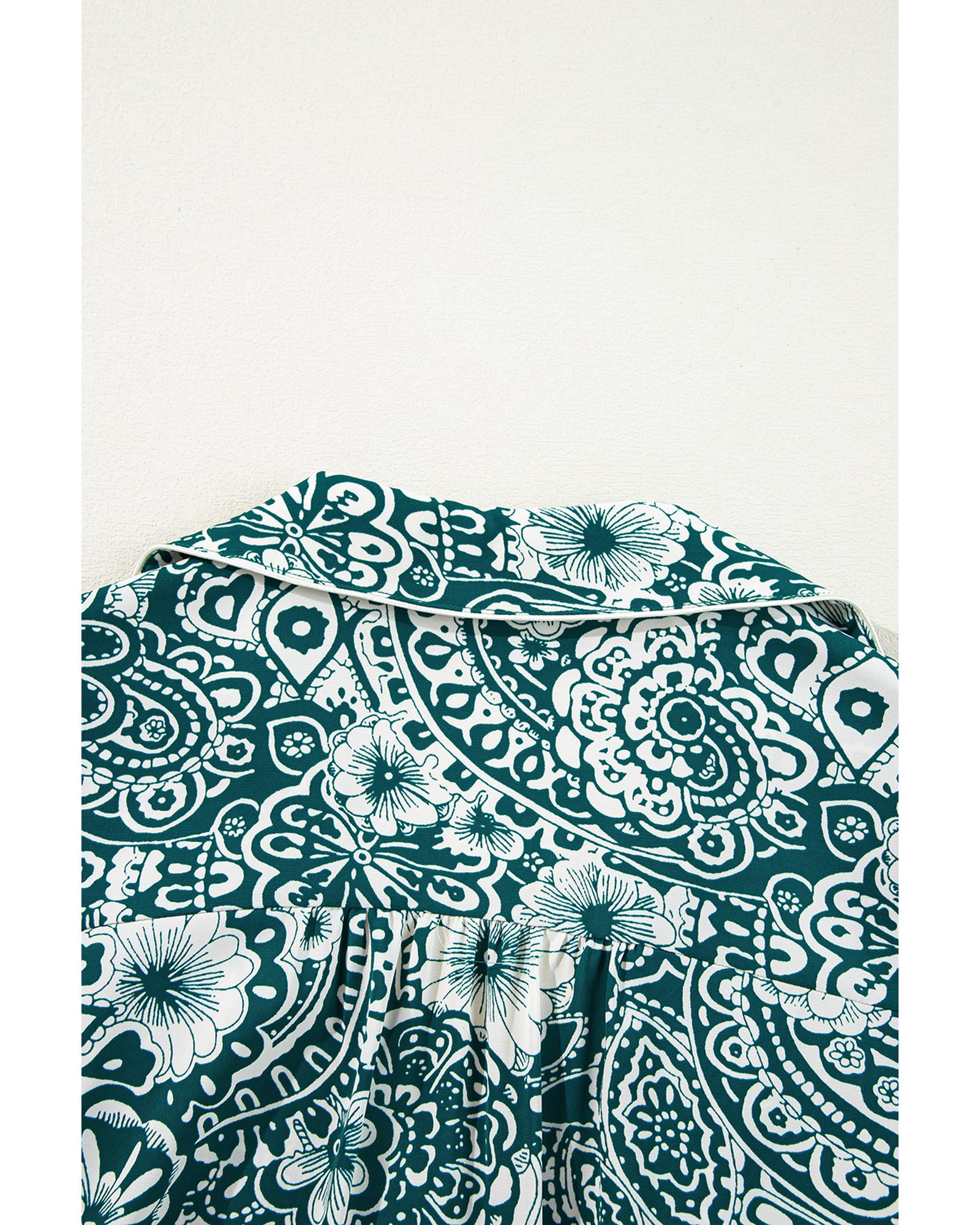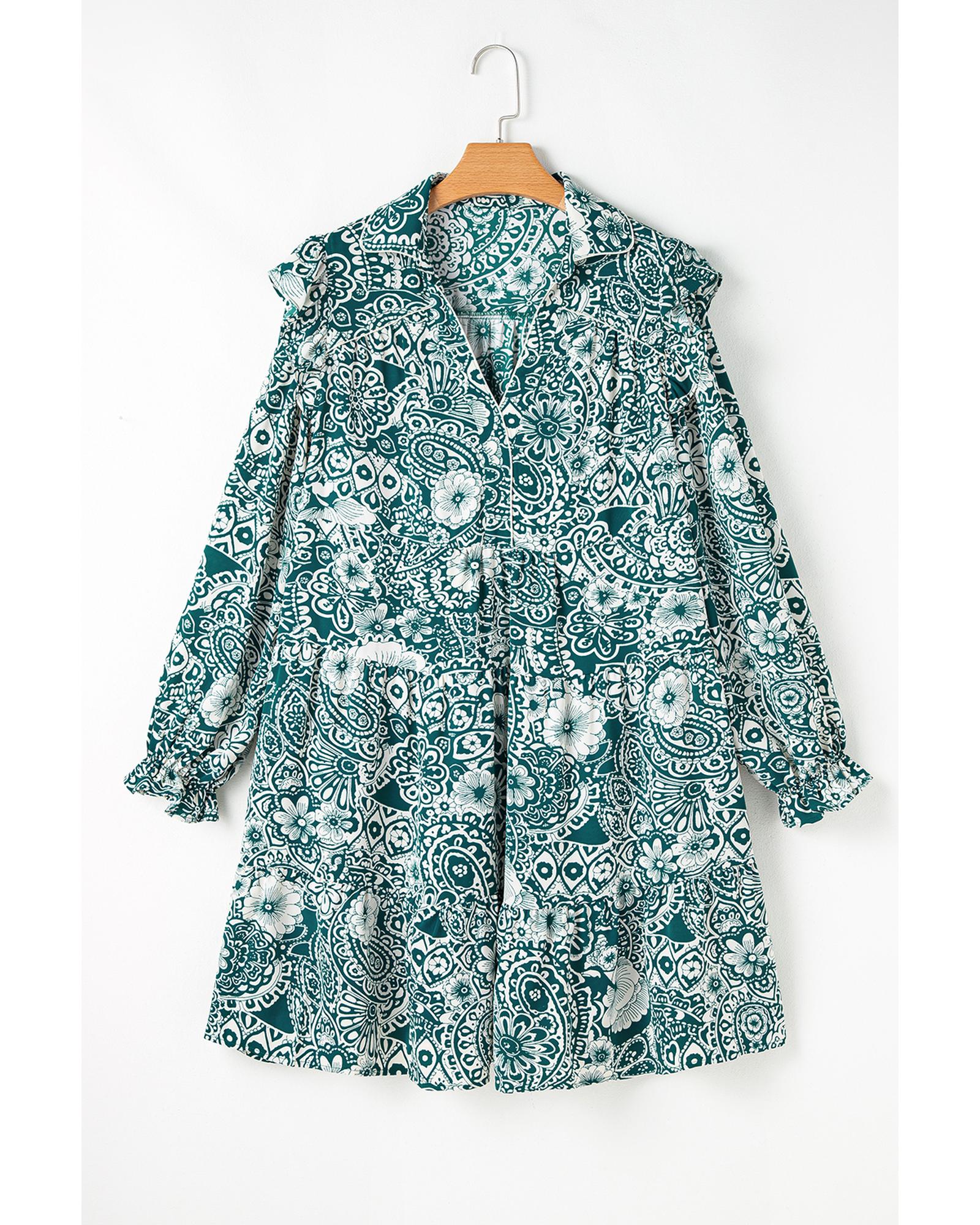 Green Floral Flounce Sleeve Split Neck Plus Size Dress – 2X