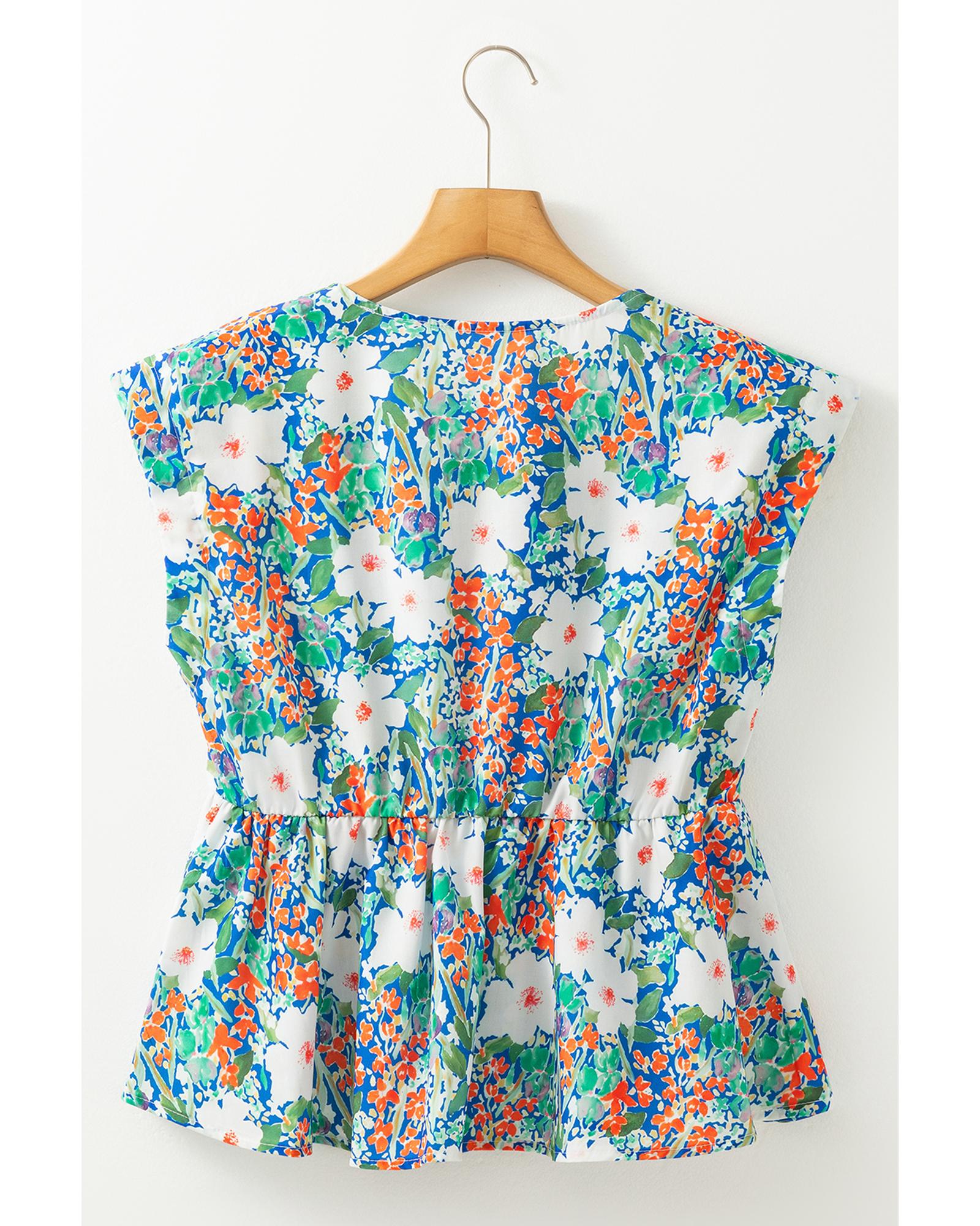 - Green floral print sleeveless peplum blouse