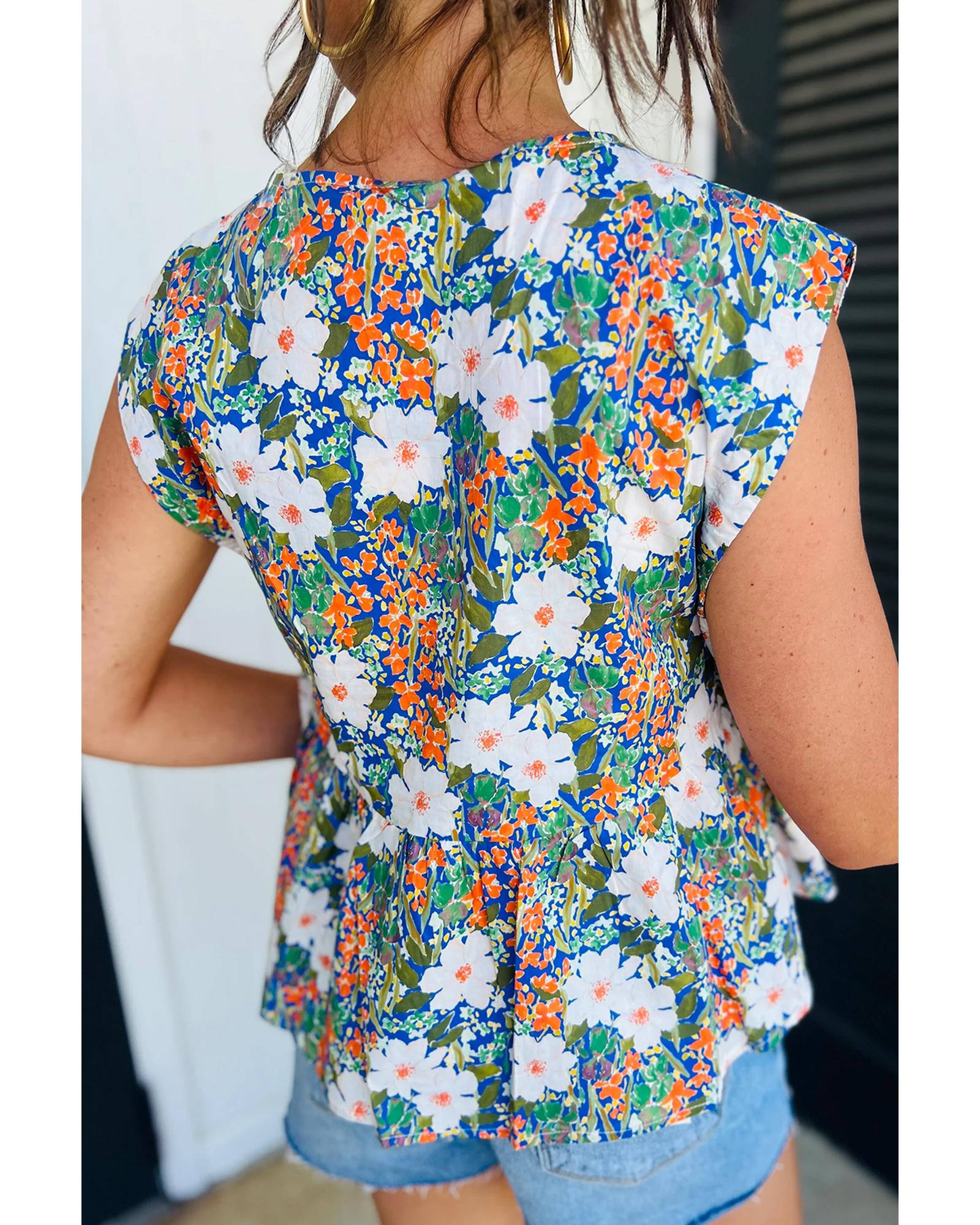This sleeveless peplum blouse features a charming green floral print, perfect for adding a touch of romance to your wardrobe. The adorable bow applique detail enhances its whimsical appeal, making it a delightful choice for warm weather outings.