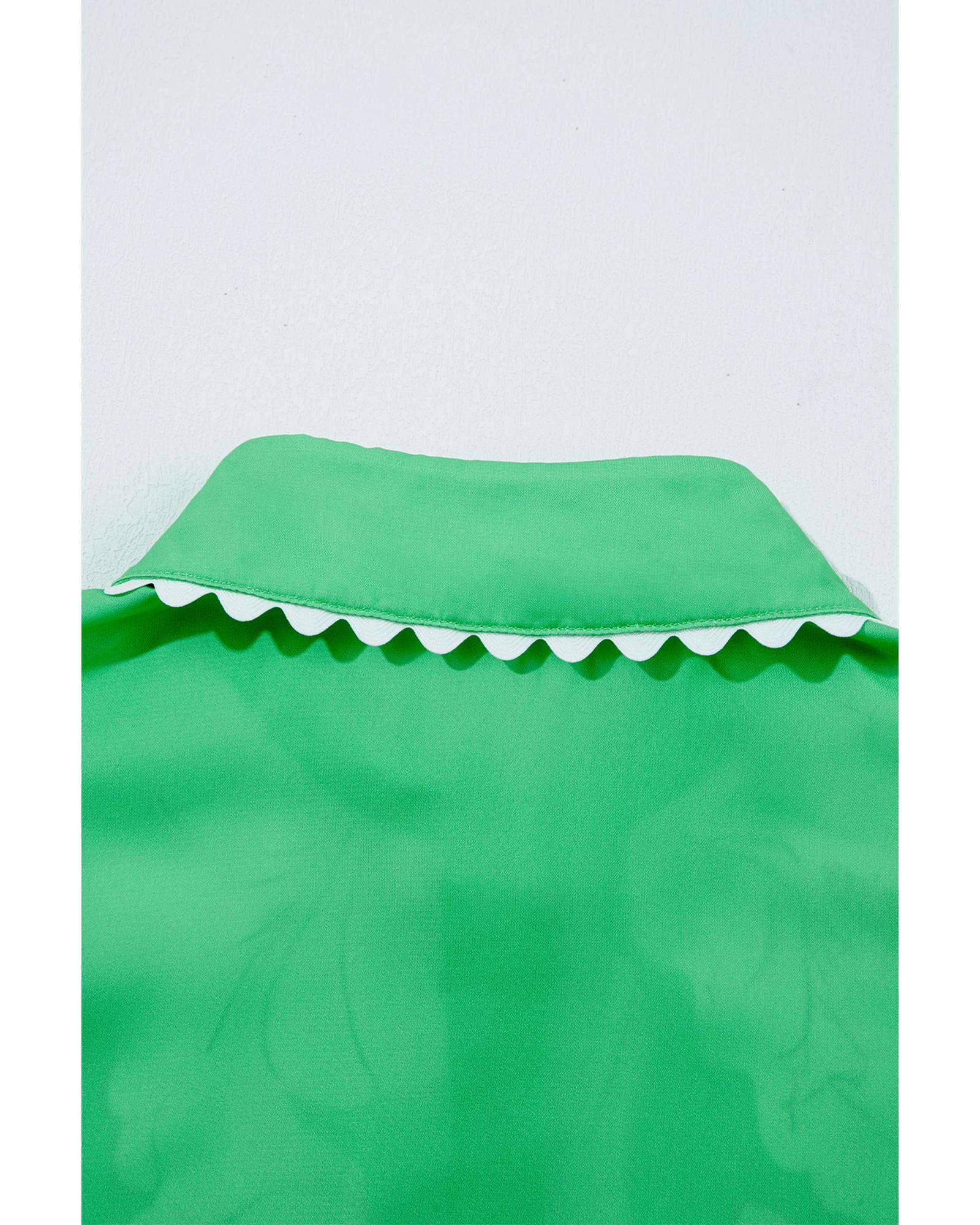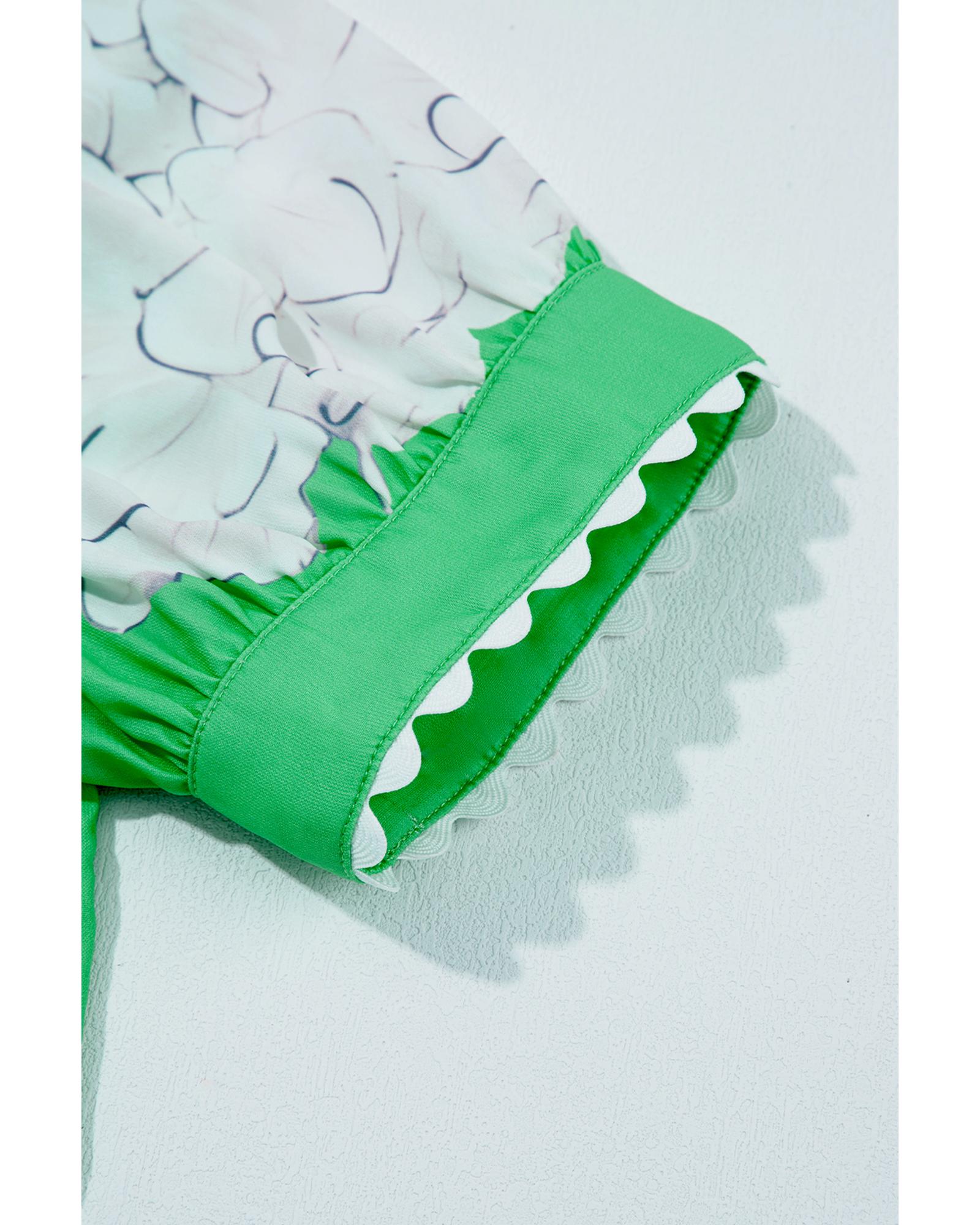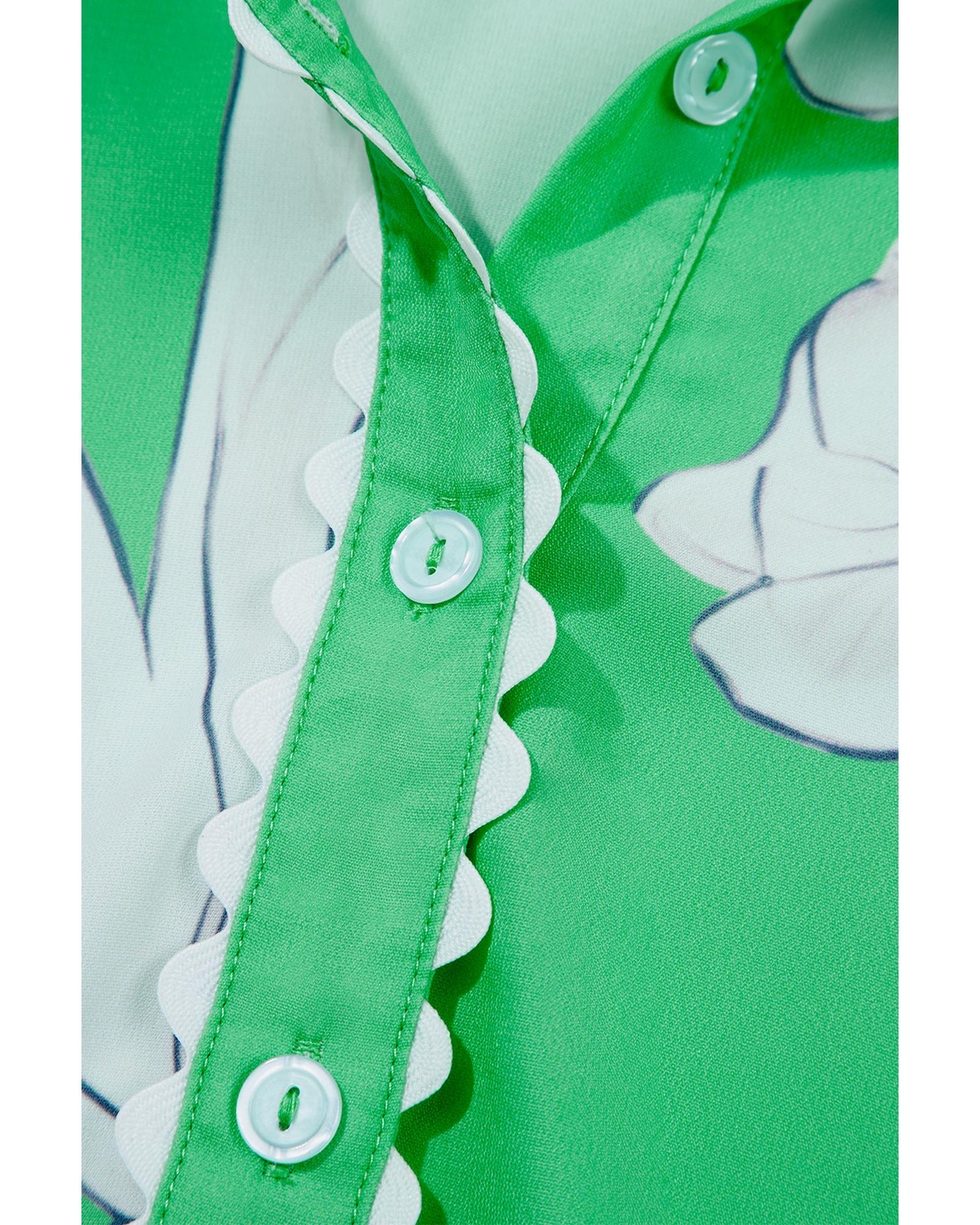 Green Floral Ric Rac Edge Puff Sleeve Button Up Summer Shirt – S