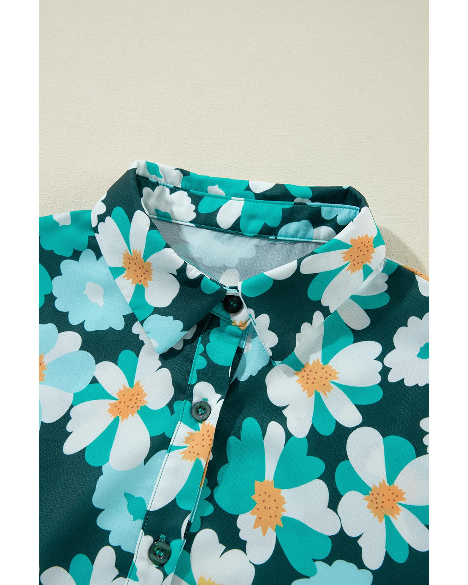 This green floral tiered long puff sleeve shirt dress offers a stylish and elegant look suitable for various occasions. Its tiered design and floral pattern create a sophisticated appearance, complemented by long puff sleeves for added flair. Made from 100% polyester, it combines comfort with a fashionable style.