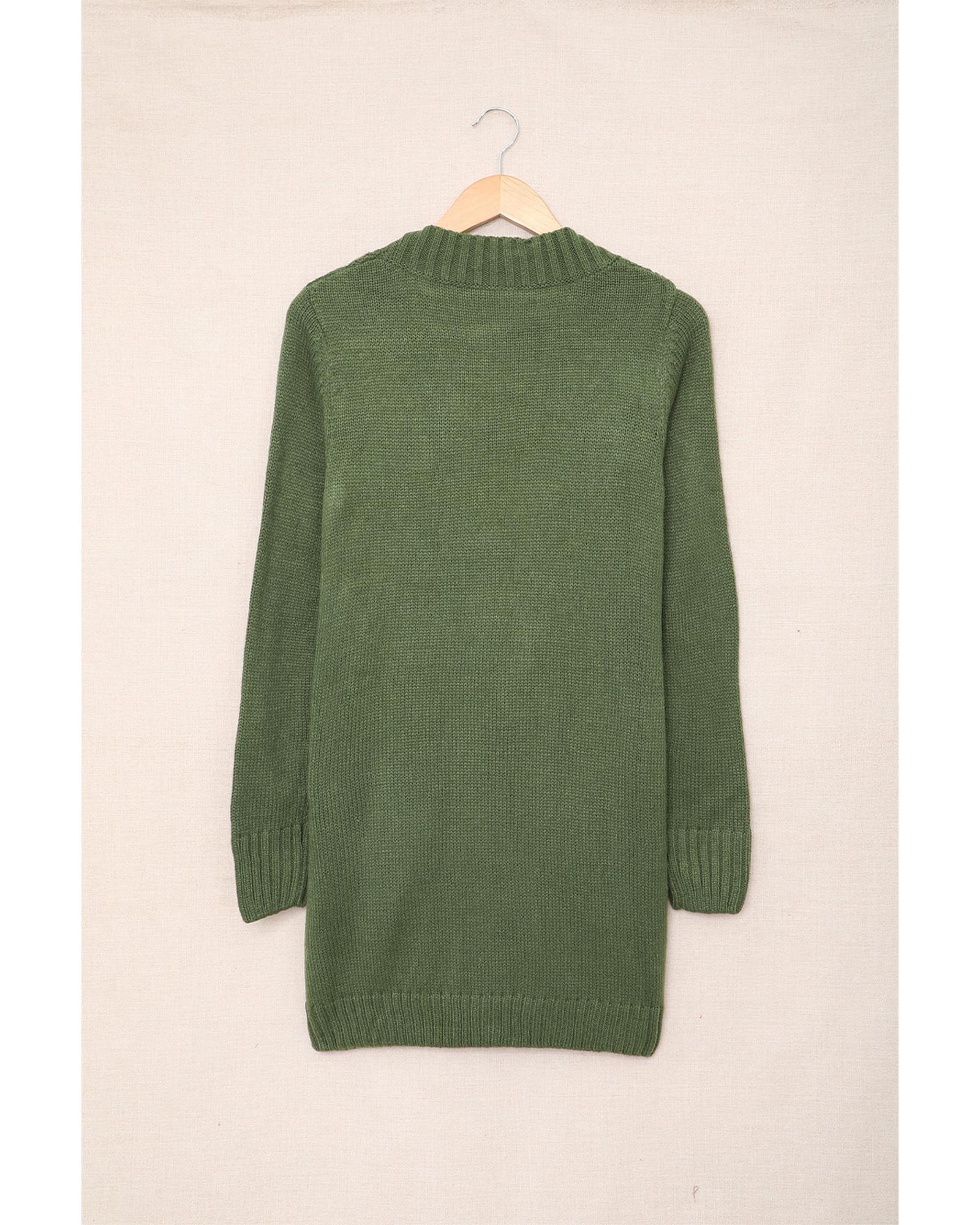 Green Front Pocket and Buttons Closure Cardigan – 2XL