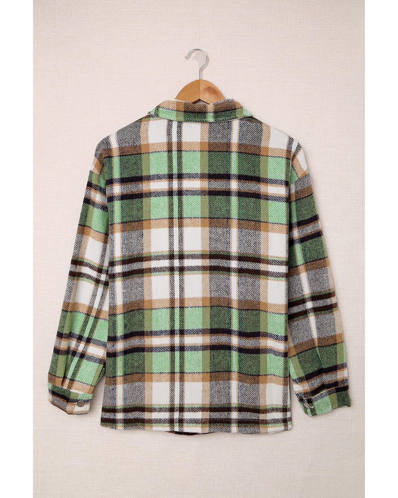 Green Geometric Plaid Print Pocketed Shacket – XL