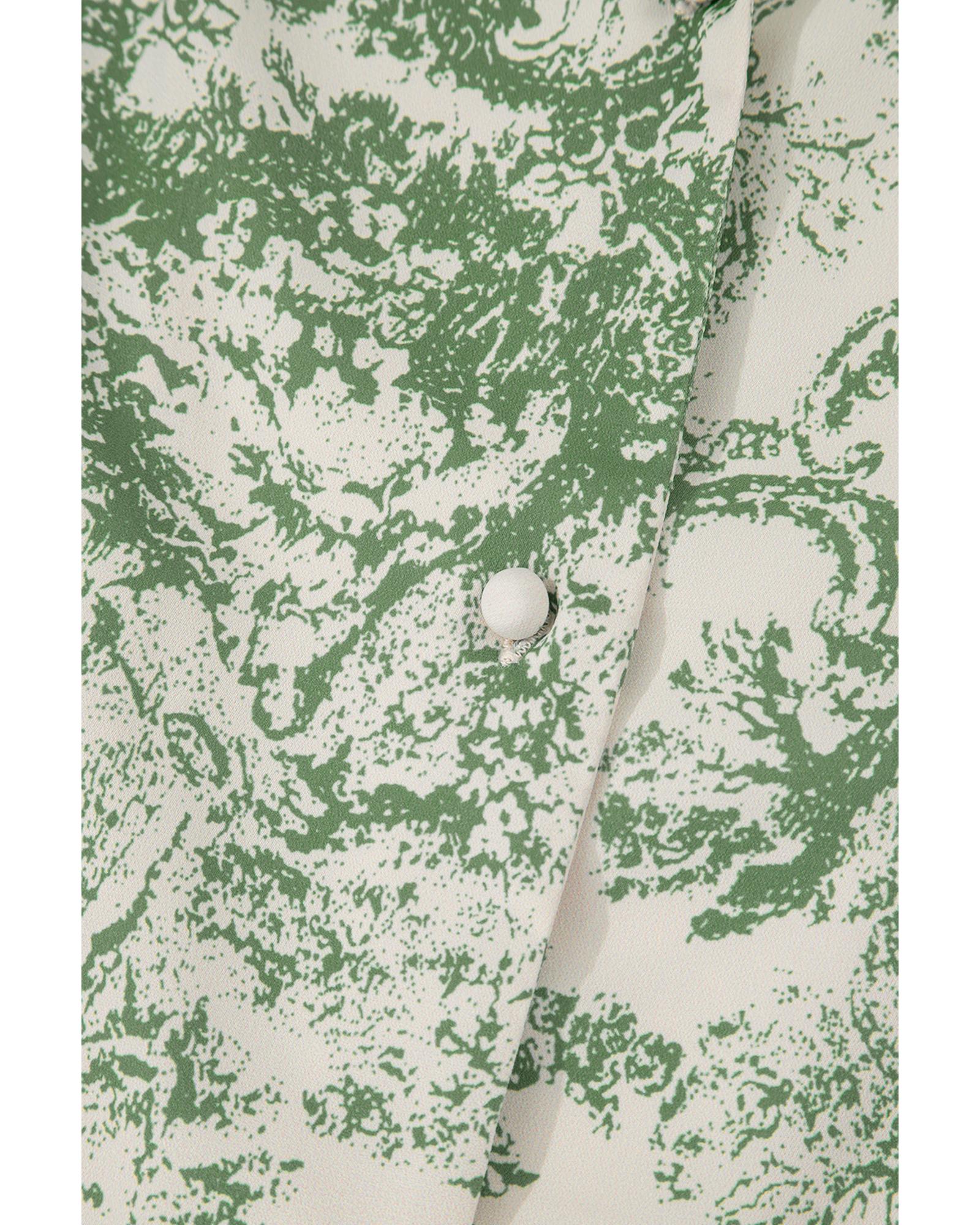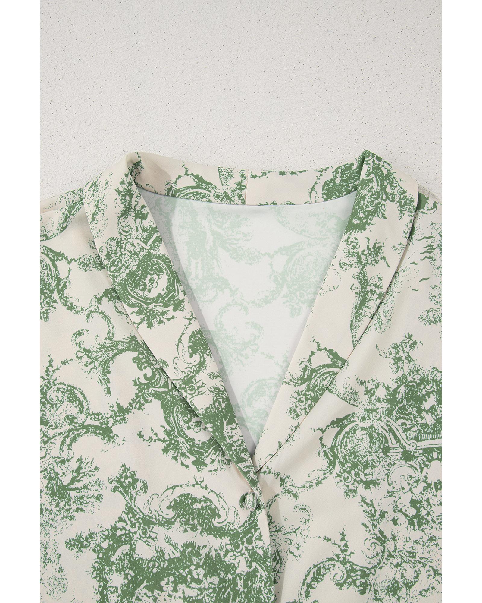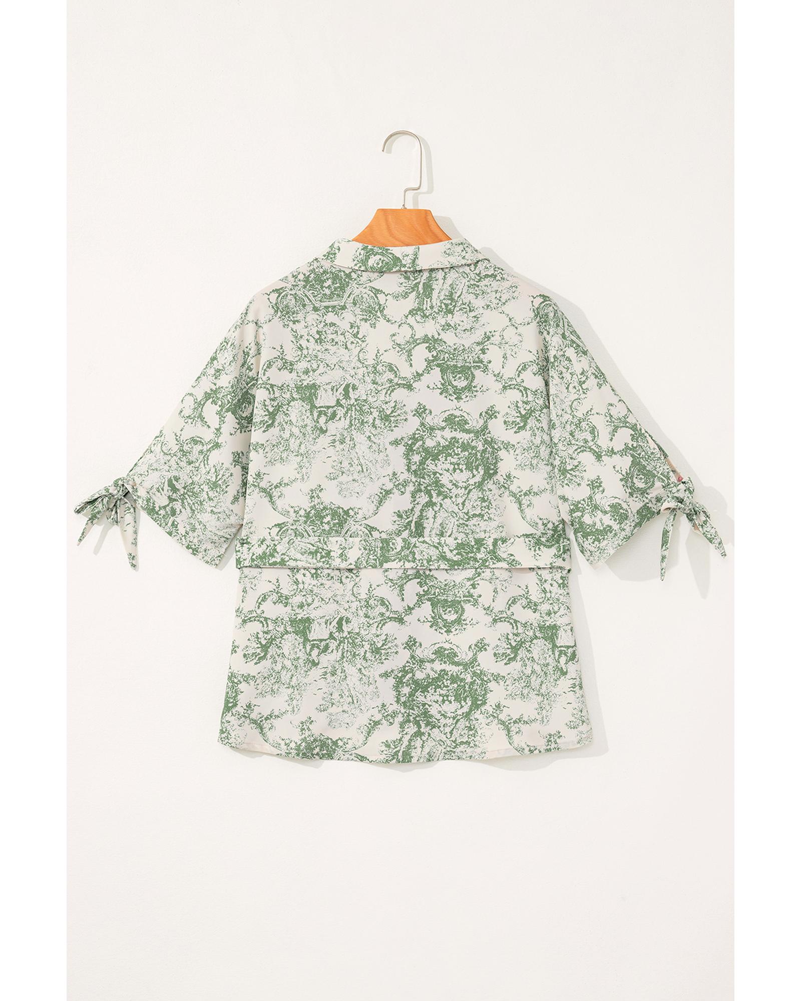 Green Landscape Print Tied 3/4 Sleeve Shirt with Sash – M