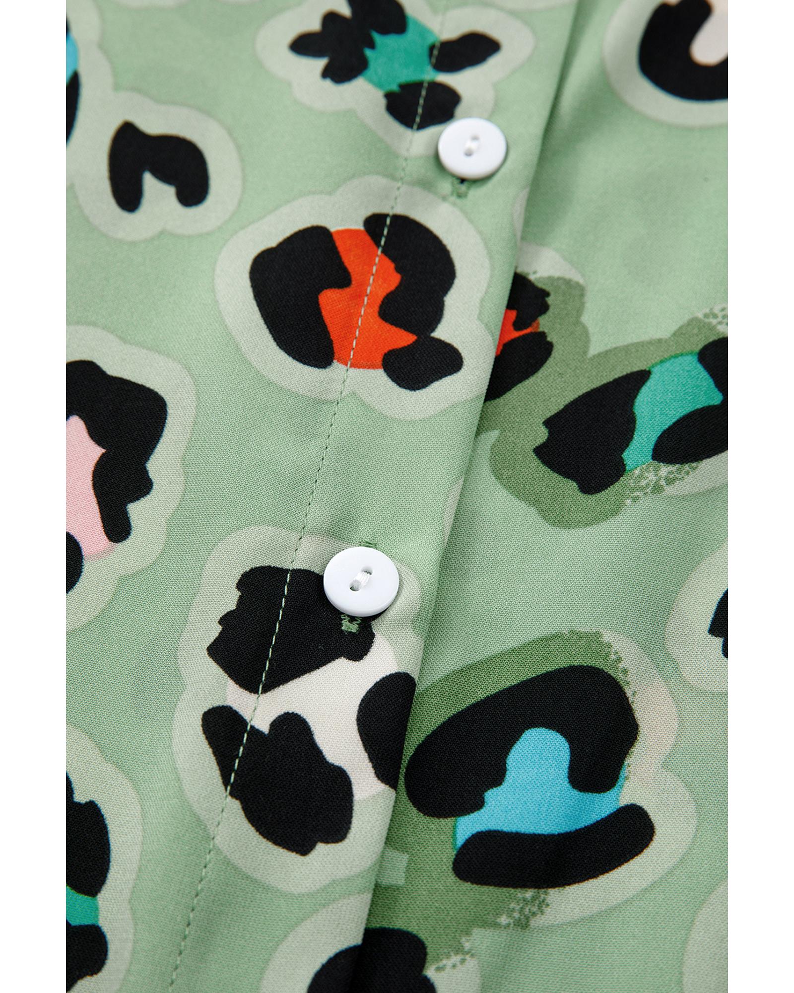 Green Leopard Print Short Sleeve Shirt and Wide Leg Pants Set – S
