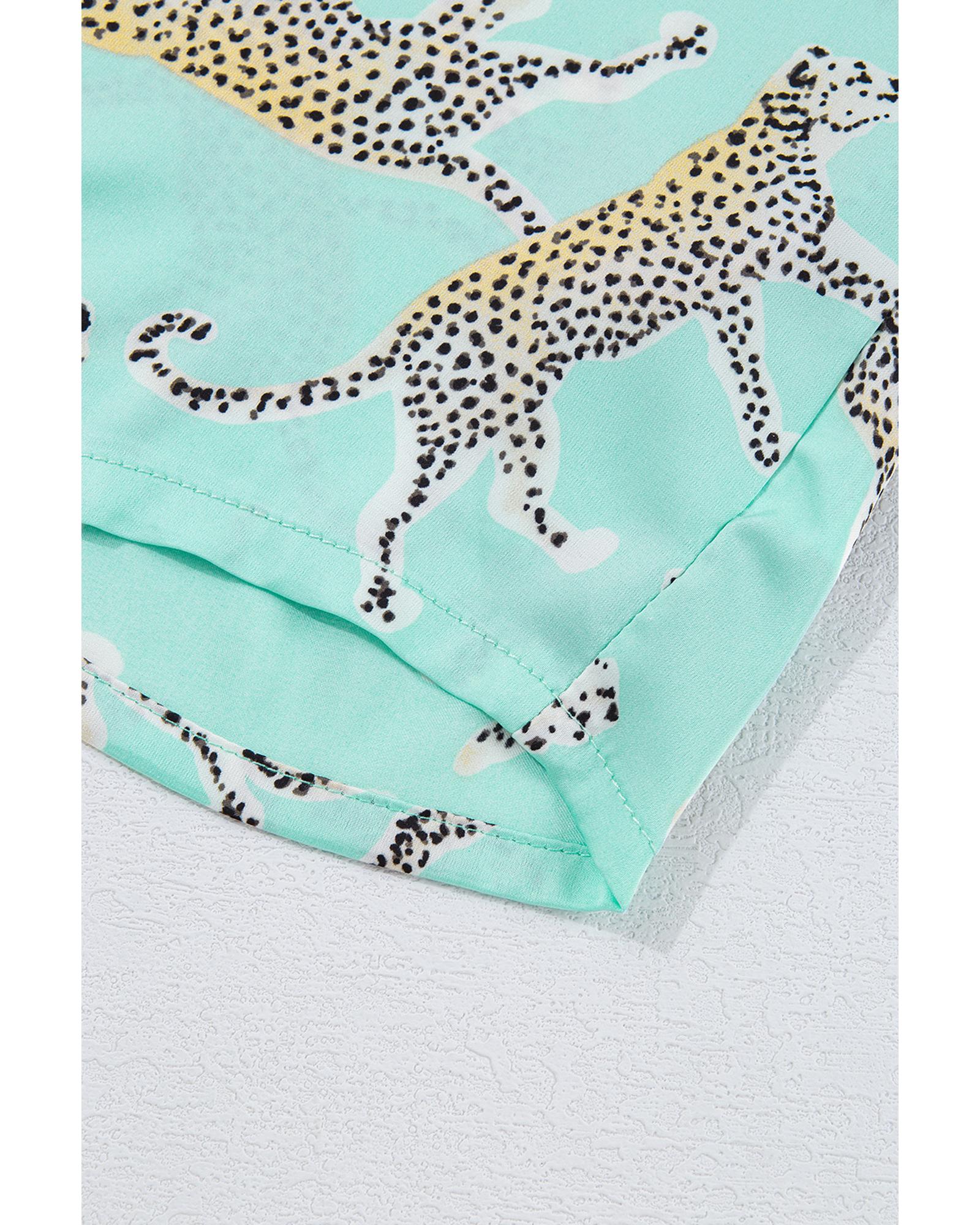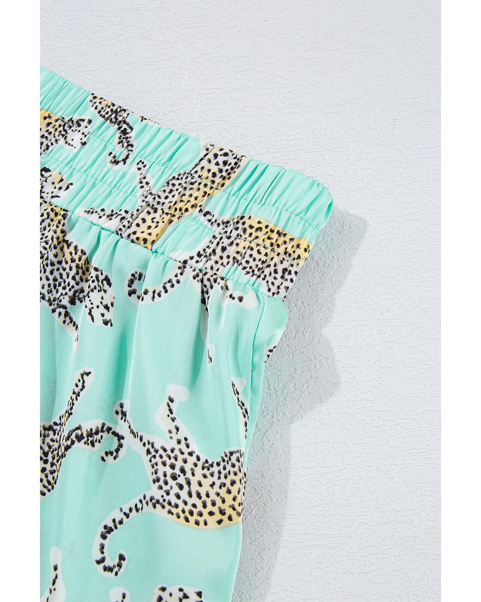 Green Leopard Satin Ruffle Pajama Short Set – XL
