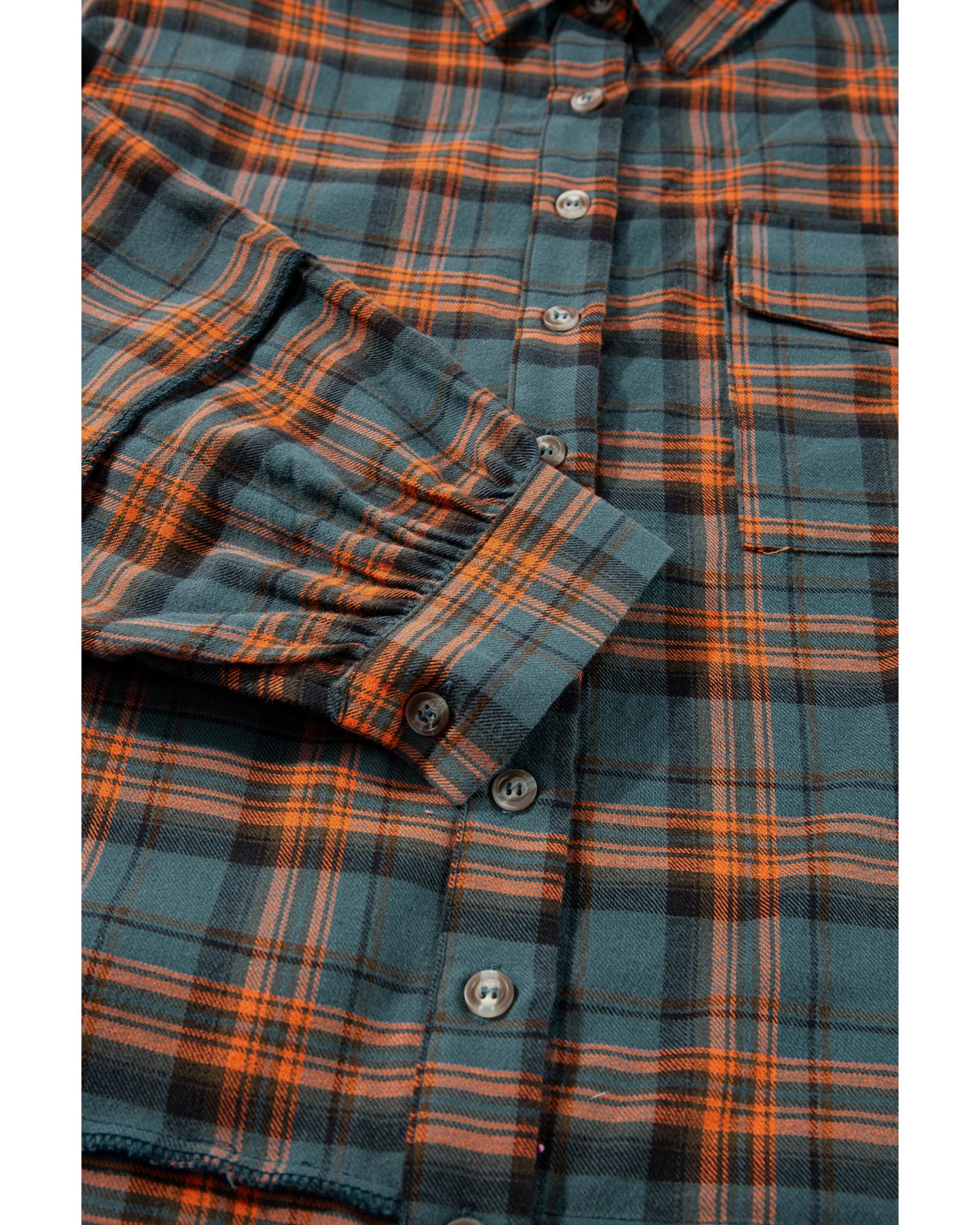 Green Plaid Long Sleeeve Side Split Distressed Hem Shirt – L