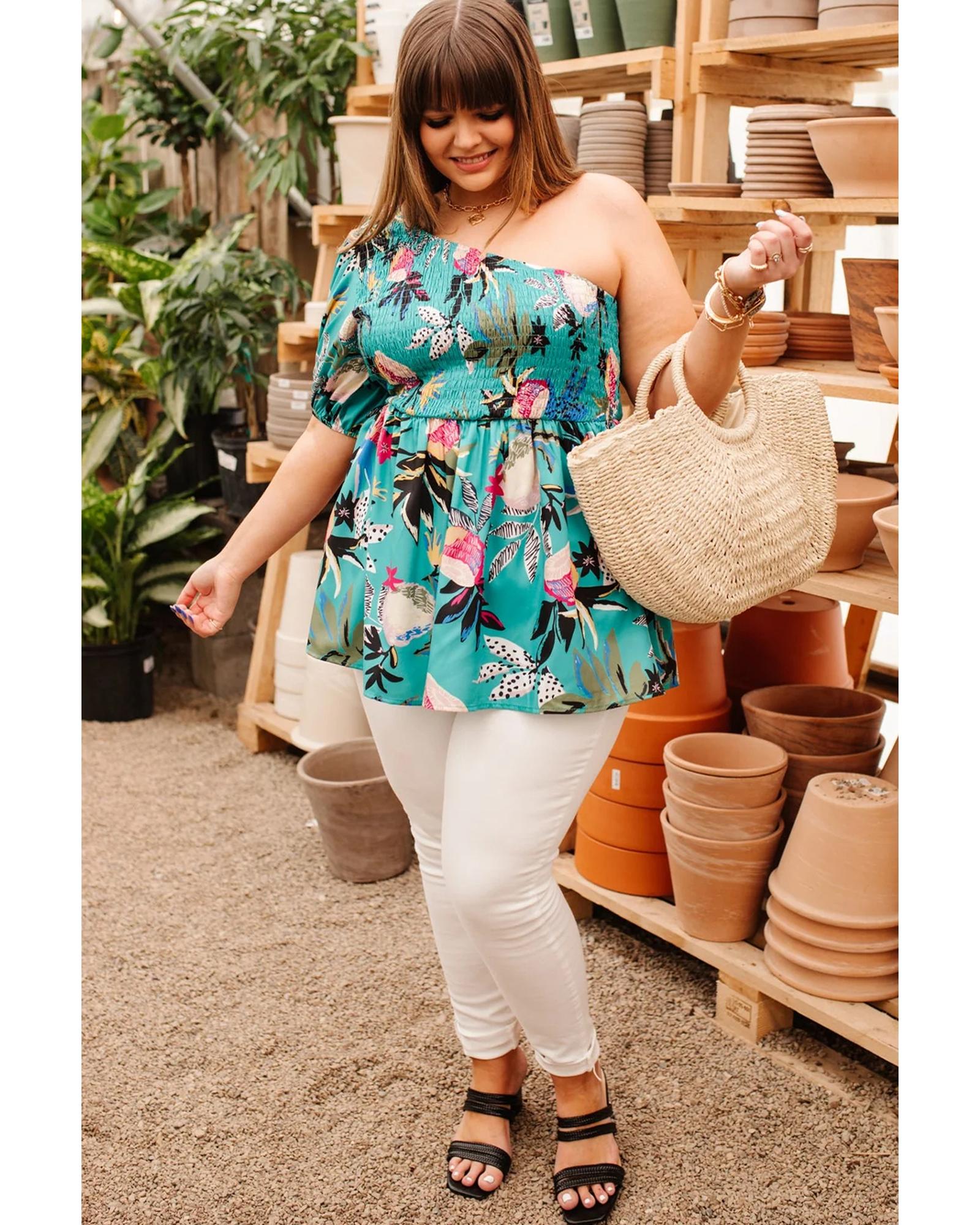 This plus size floral babydoll blouse features a charming floral pattern and a flattering babydoll silhouette. Designed for comfort and style, it offers a flowy fit with feminine puff short sleeves. The smocked bodice enhances the overall silhouette, making it a versatile addition to your wardrobe.