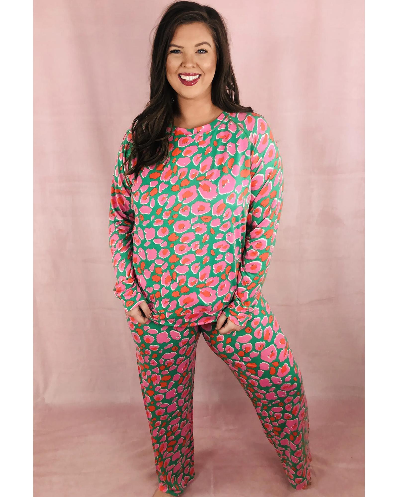 Green Plus Size Printed Long Sleeve and Pants Lounge Set – 2X