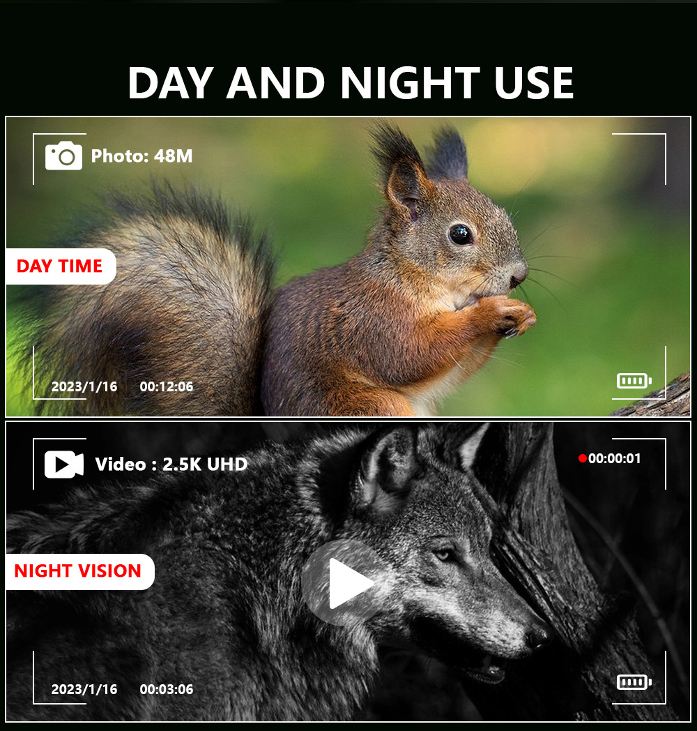 • Supports high-resolution photos up to 48MP and video recording in 2.5K UHD, 1080P, and 720P