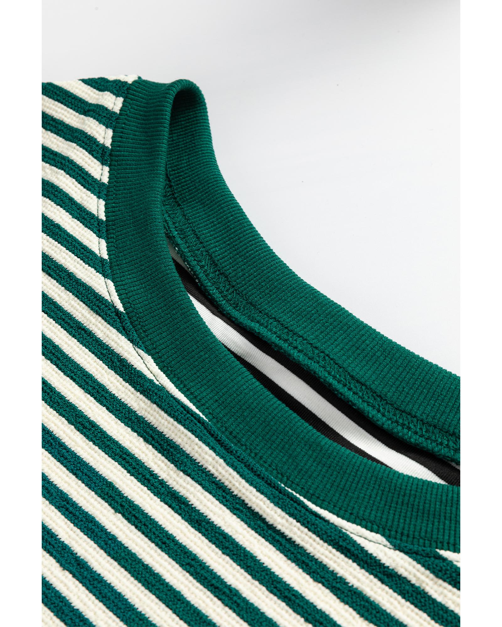 Green Stripe Loose Drop Shoulder Long Sleeve Top – XL