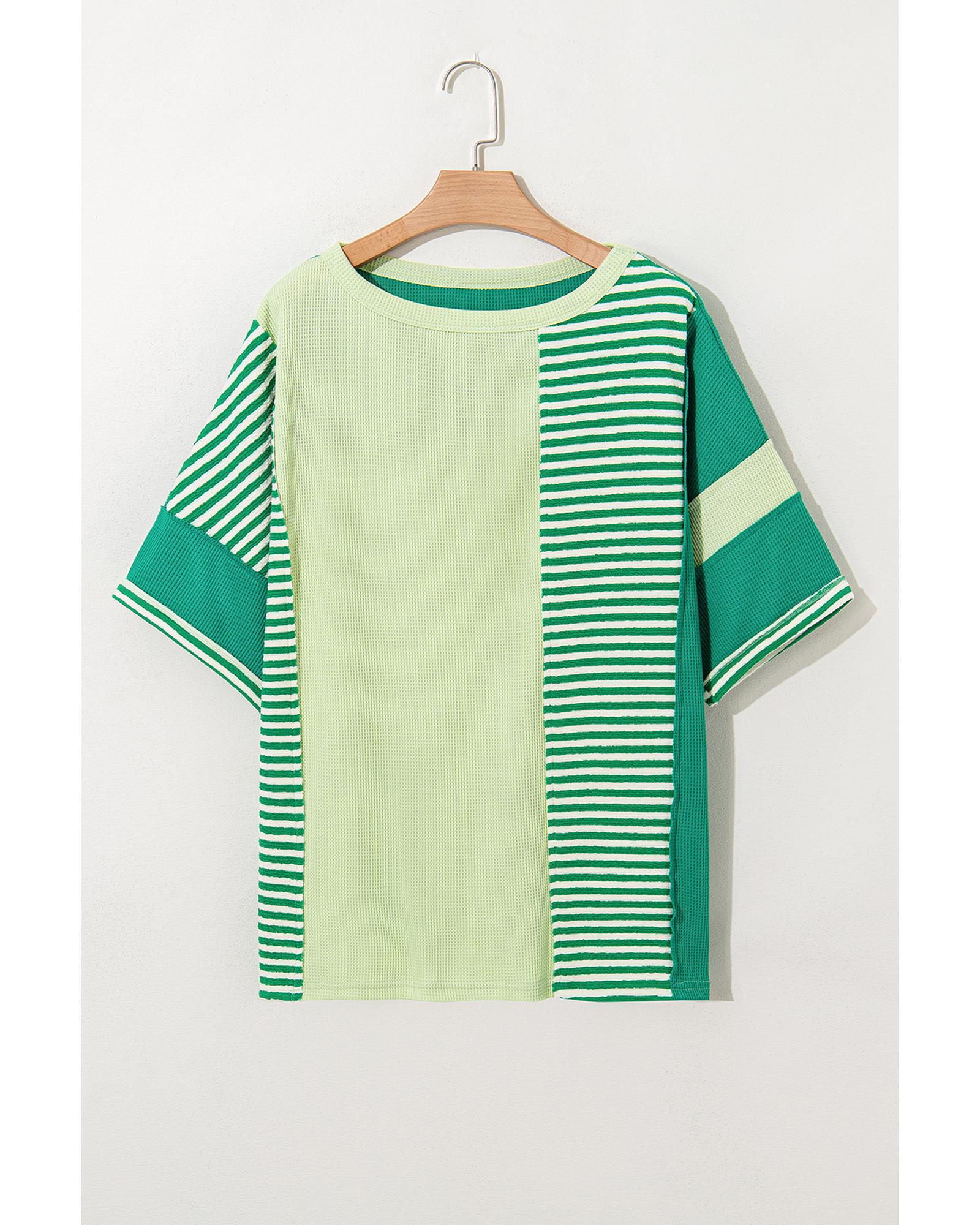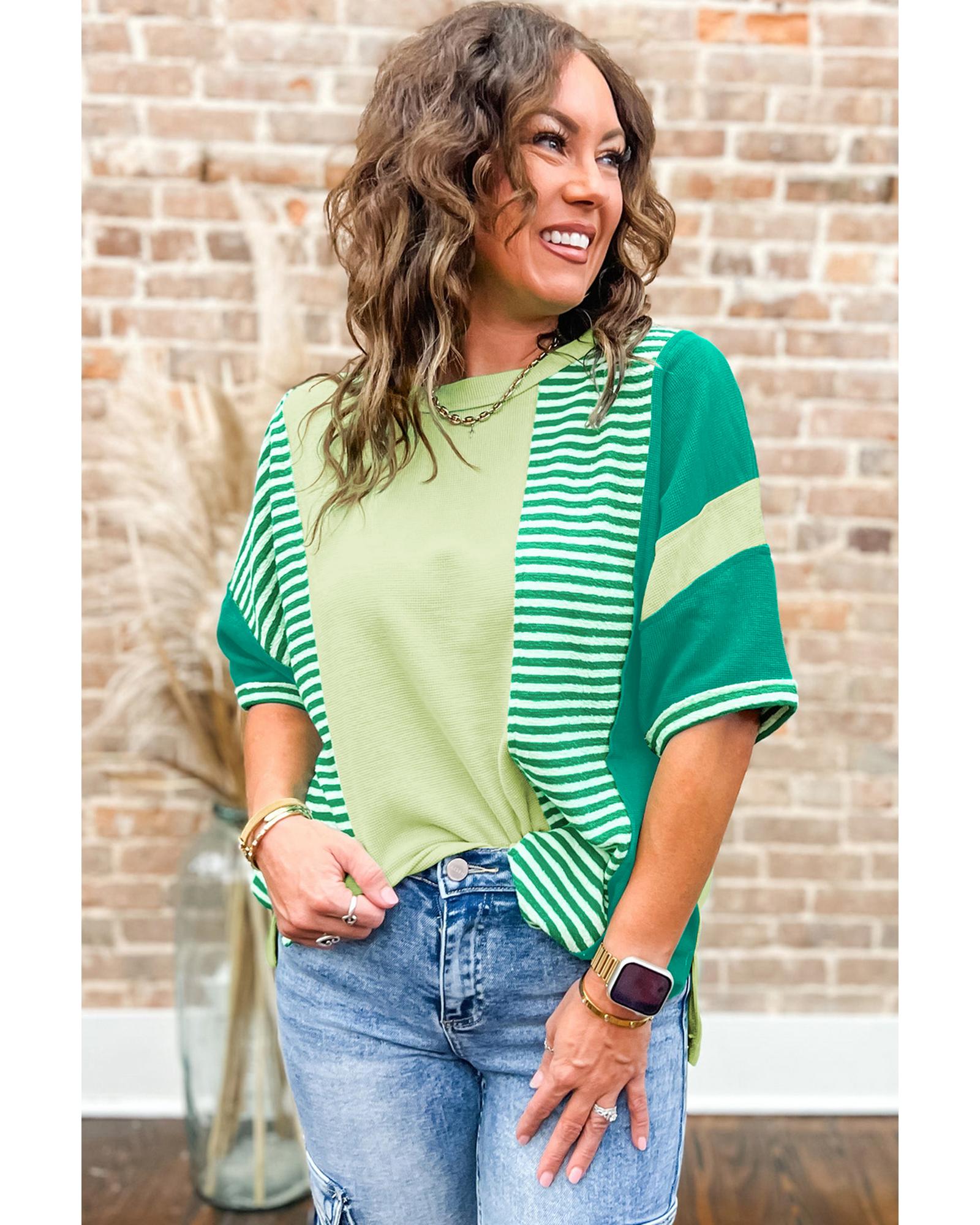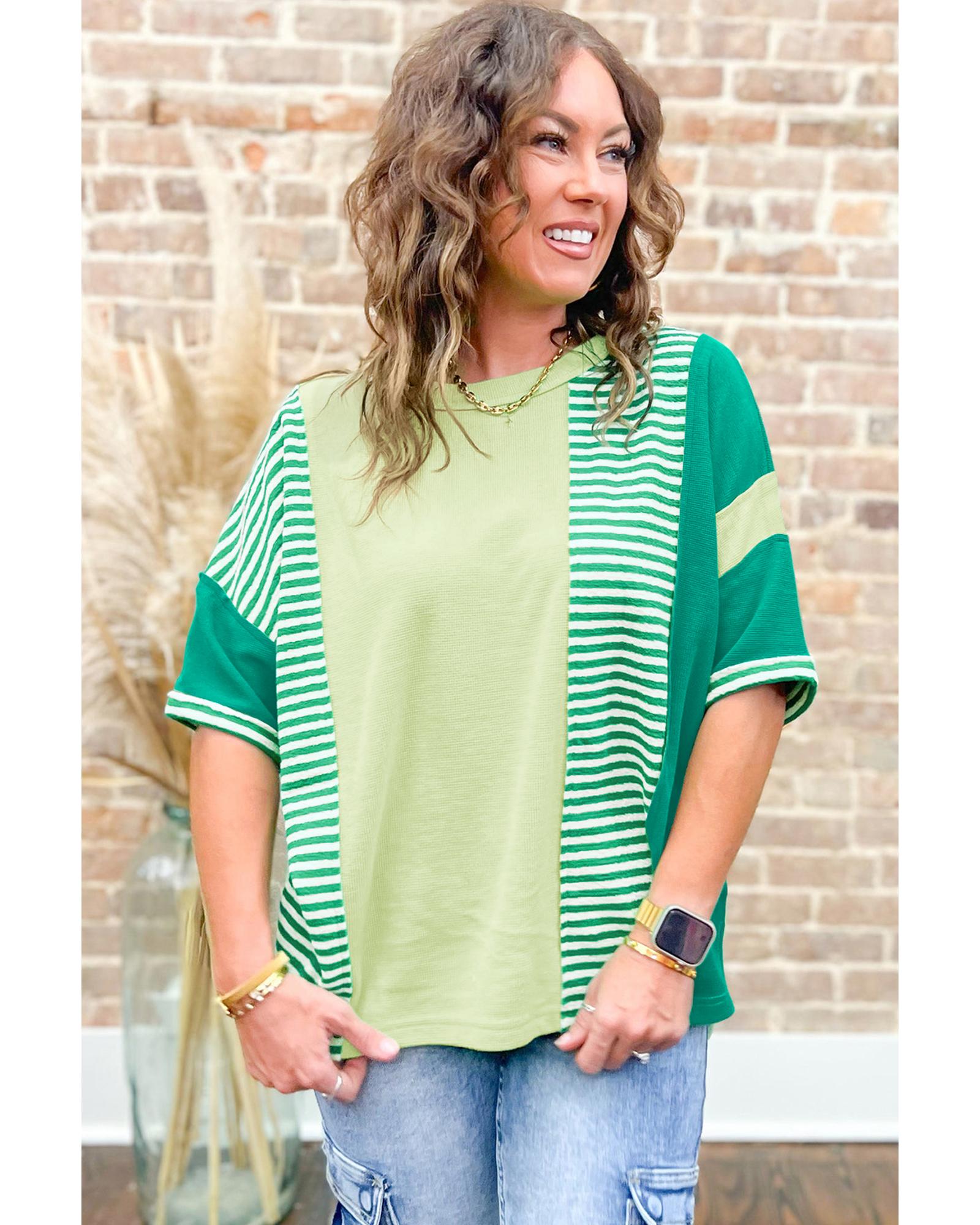 Green Stripe Patchwork Colorblock Plus Size T Shirt – 2X