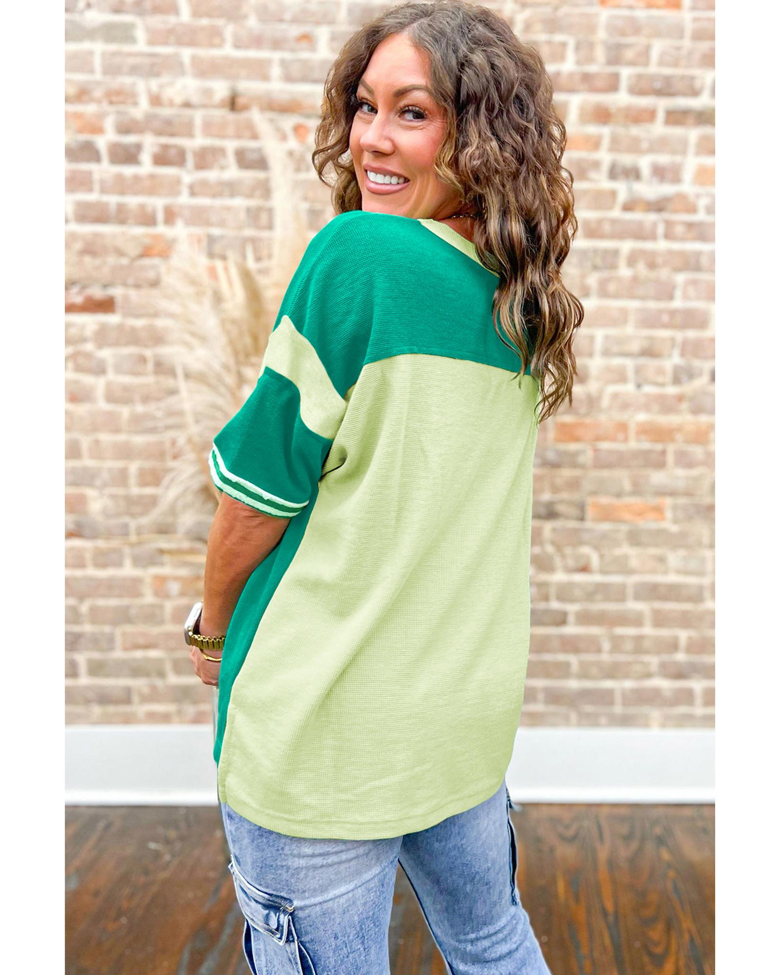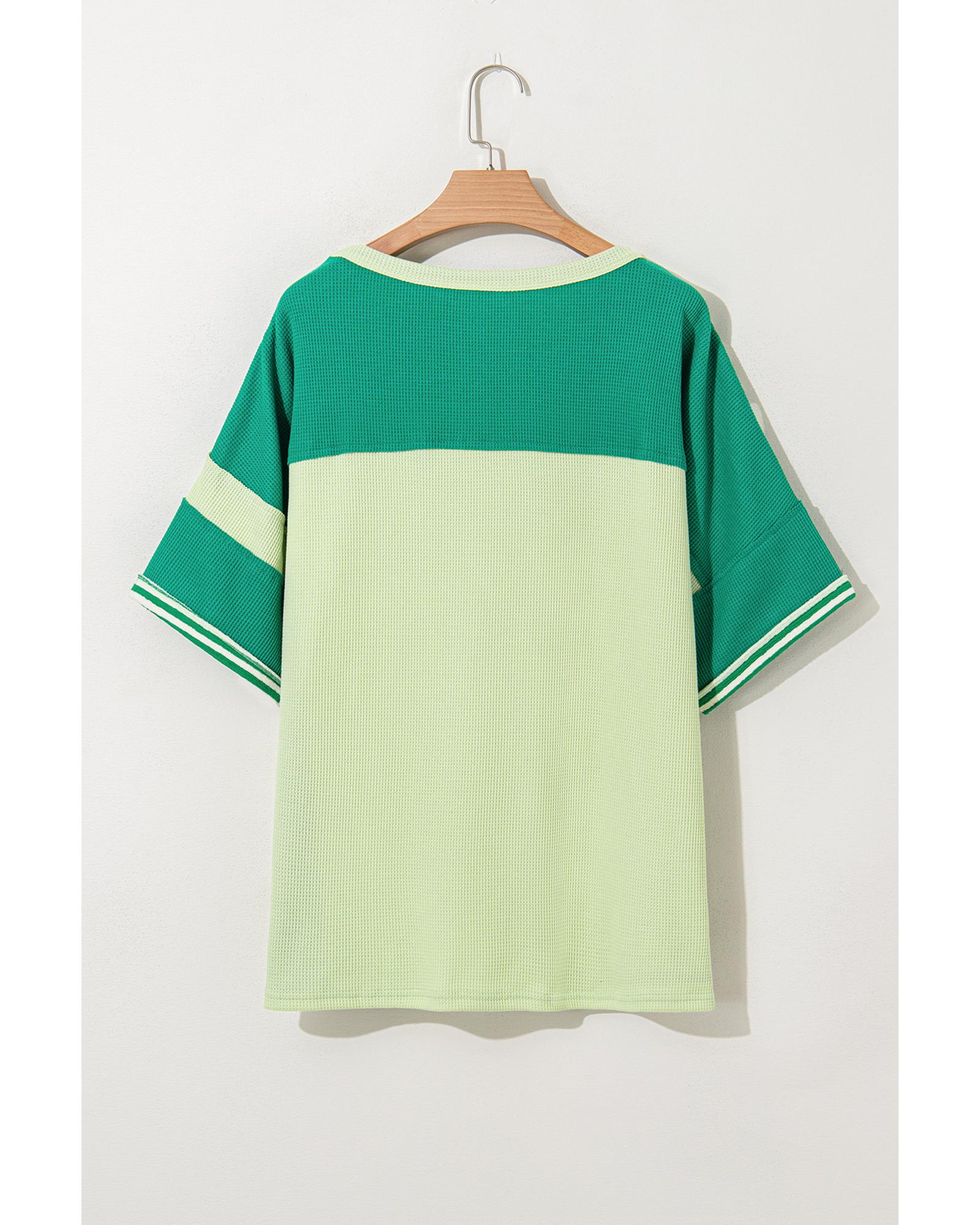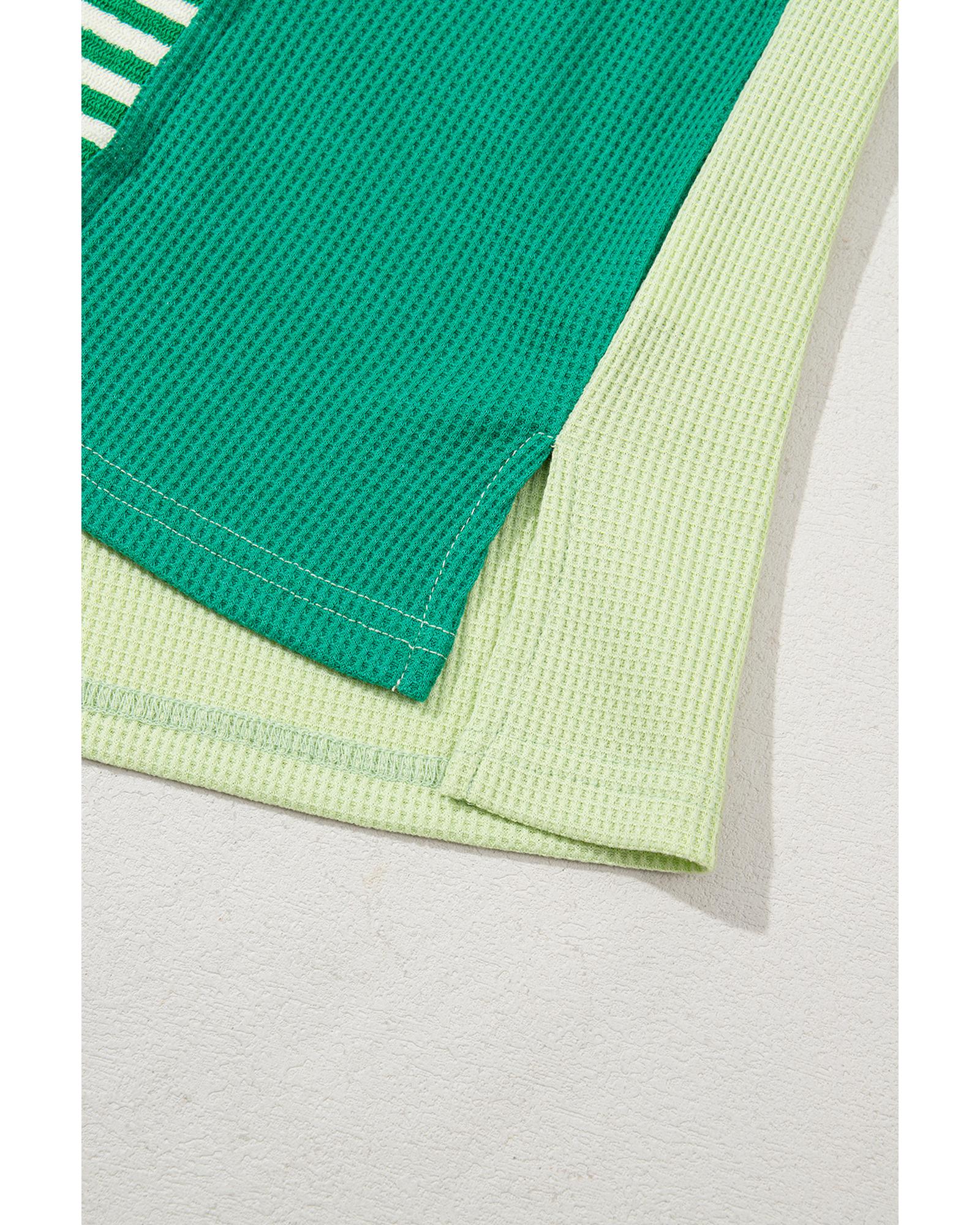Green Stripe Patchwork Colorblock Plus Size T Shirt – 2X