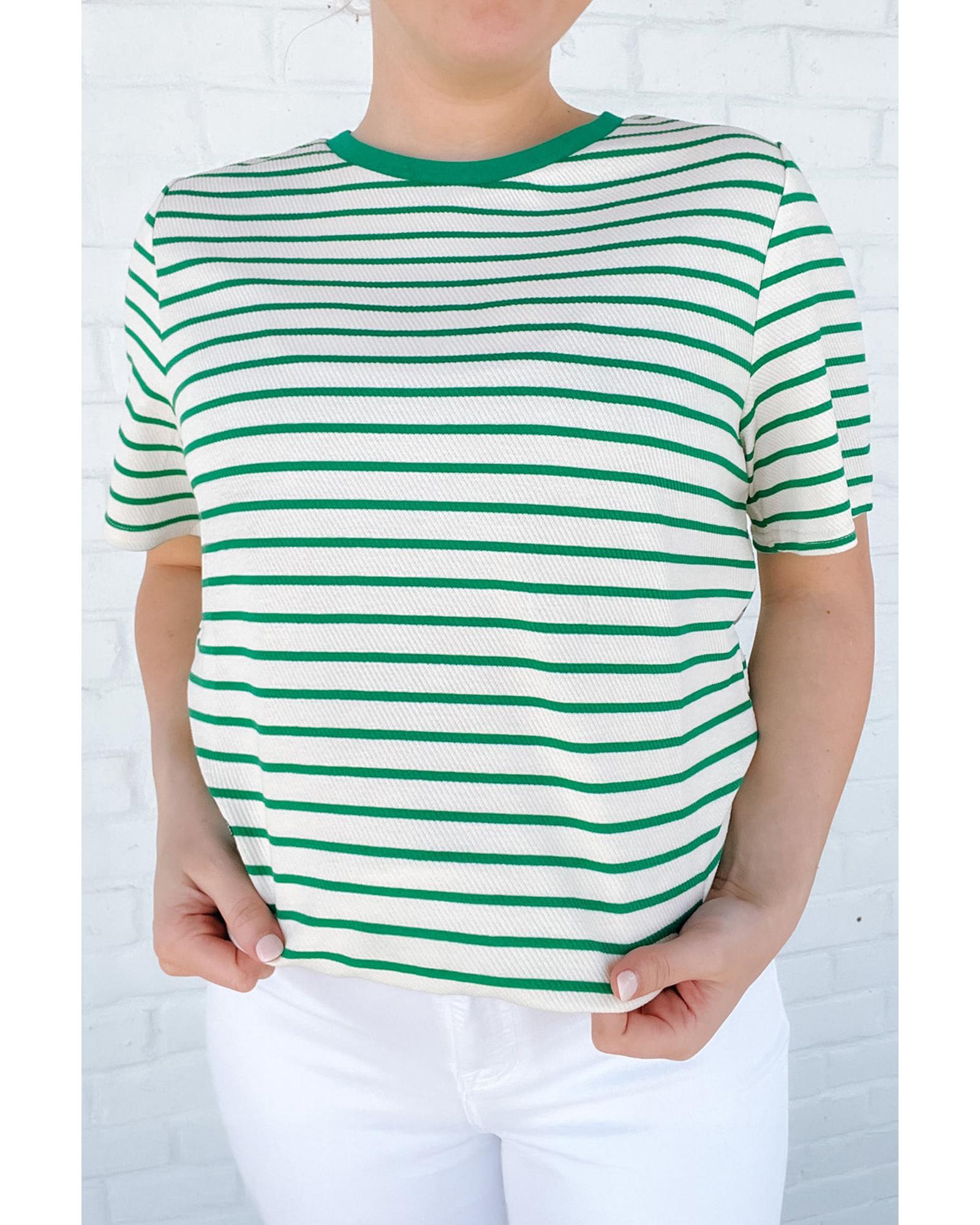This plus size round neck T-shirt features a vibrant green striped design, making it an ideal choice for celebrating St. Patrick’s Day. Designed with a trendy fitted look, it offers comfort and confidence for everyday wear or special occasions.