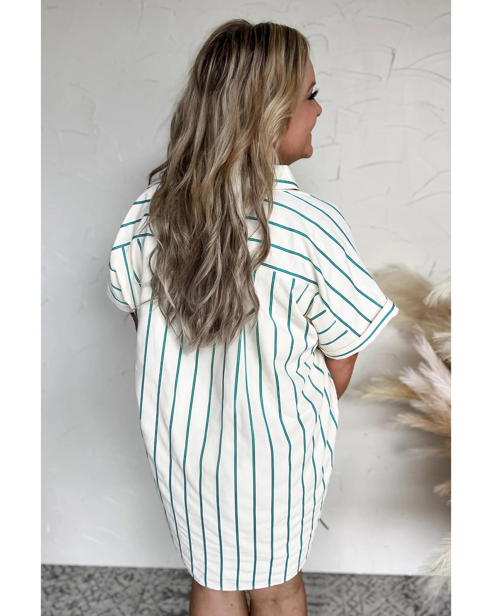 Green Stripe Plus Size St Patricks Day Short Sleeve Buttoned Shirt Dress – 2X