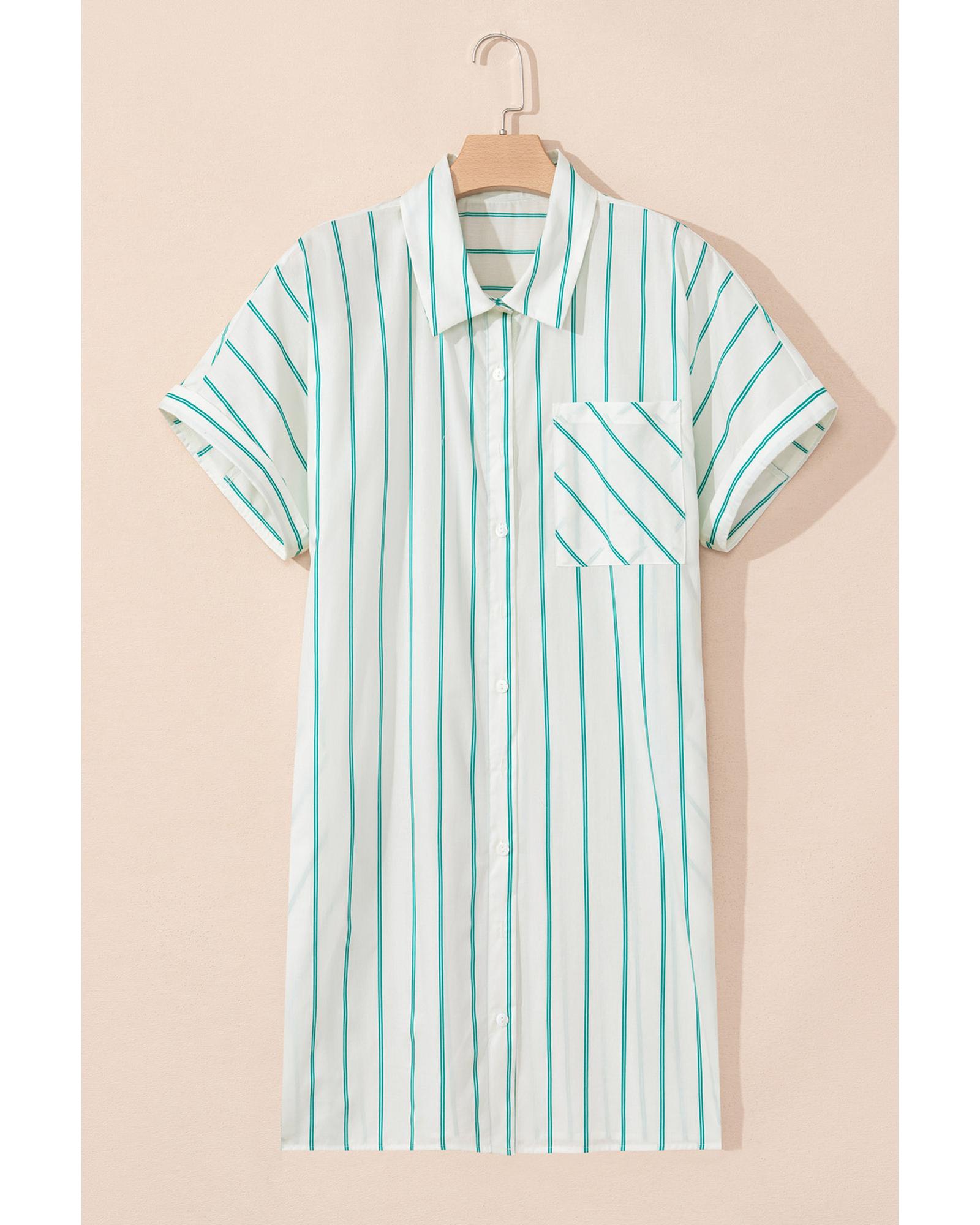 This plus size short sleeve buttoned shirt dress is perfect for celebrating St. Patrick’s Day with a stylish and comfortable look. Designed with a trendy fitted style, it offers a relaxed fit that allows for ease of movement. The dress features a classic green stripe pattern, stylish button-up detailing, and is made from 100% cotton for comfort and breathability.