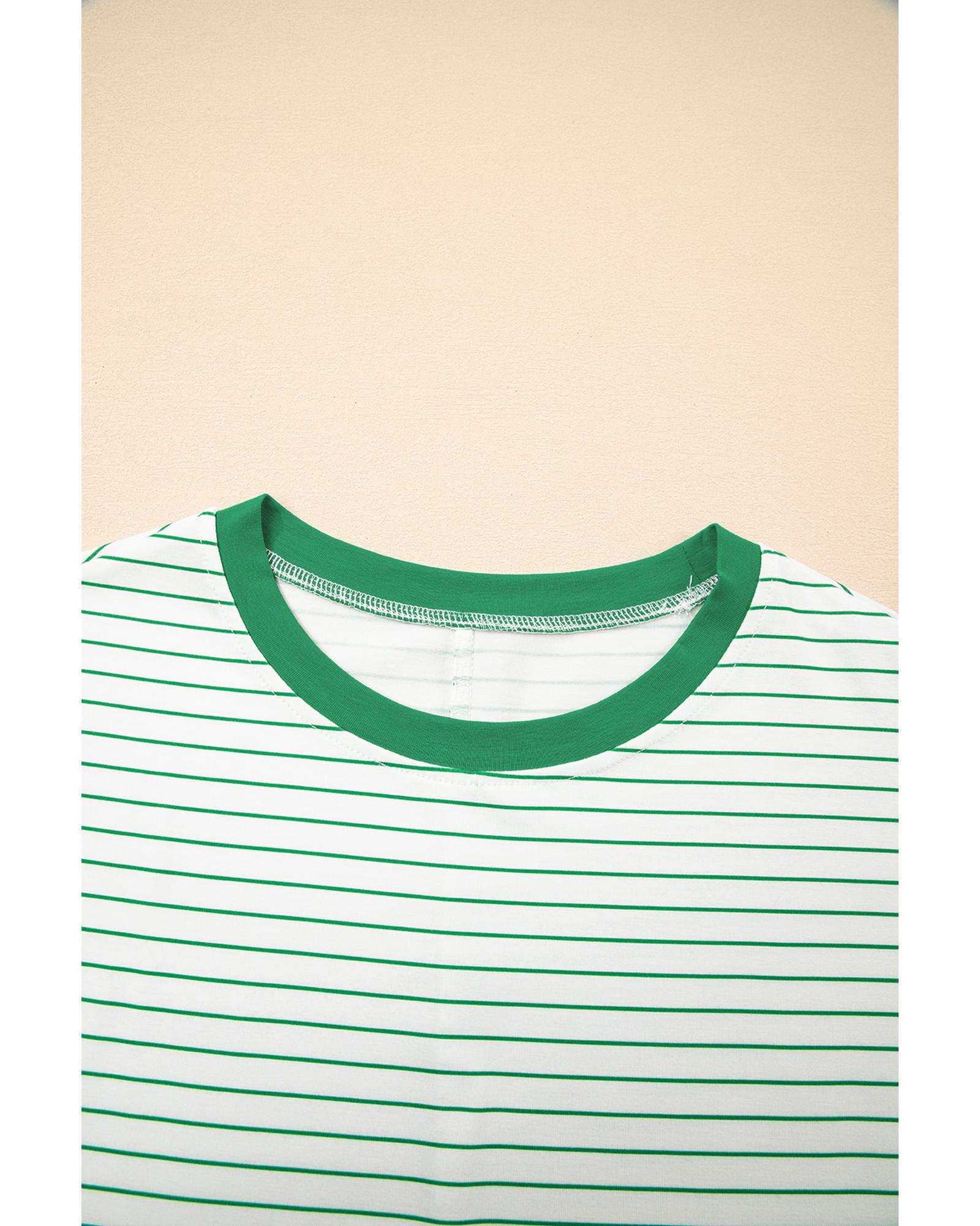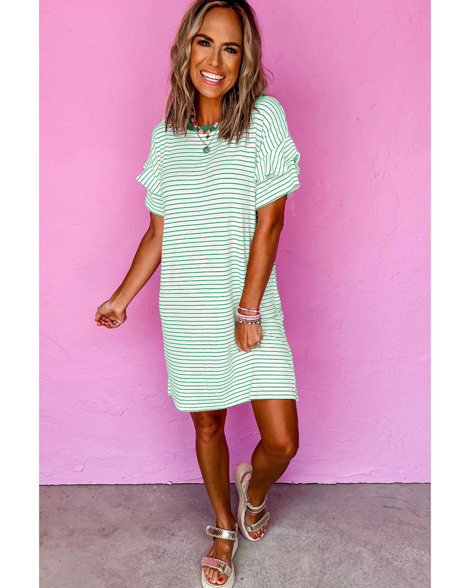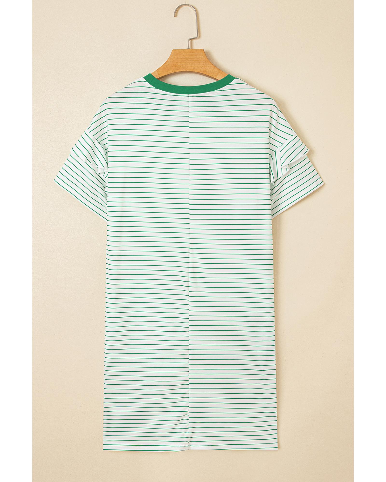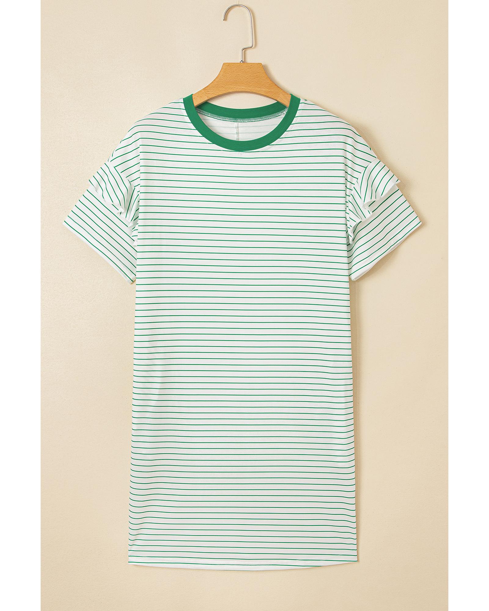 Green Stripe Ruffled Short Sleeve Crew Neck T Shirt Shift Mini Dress – XL