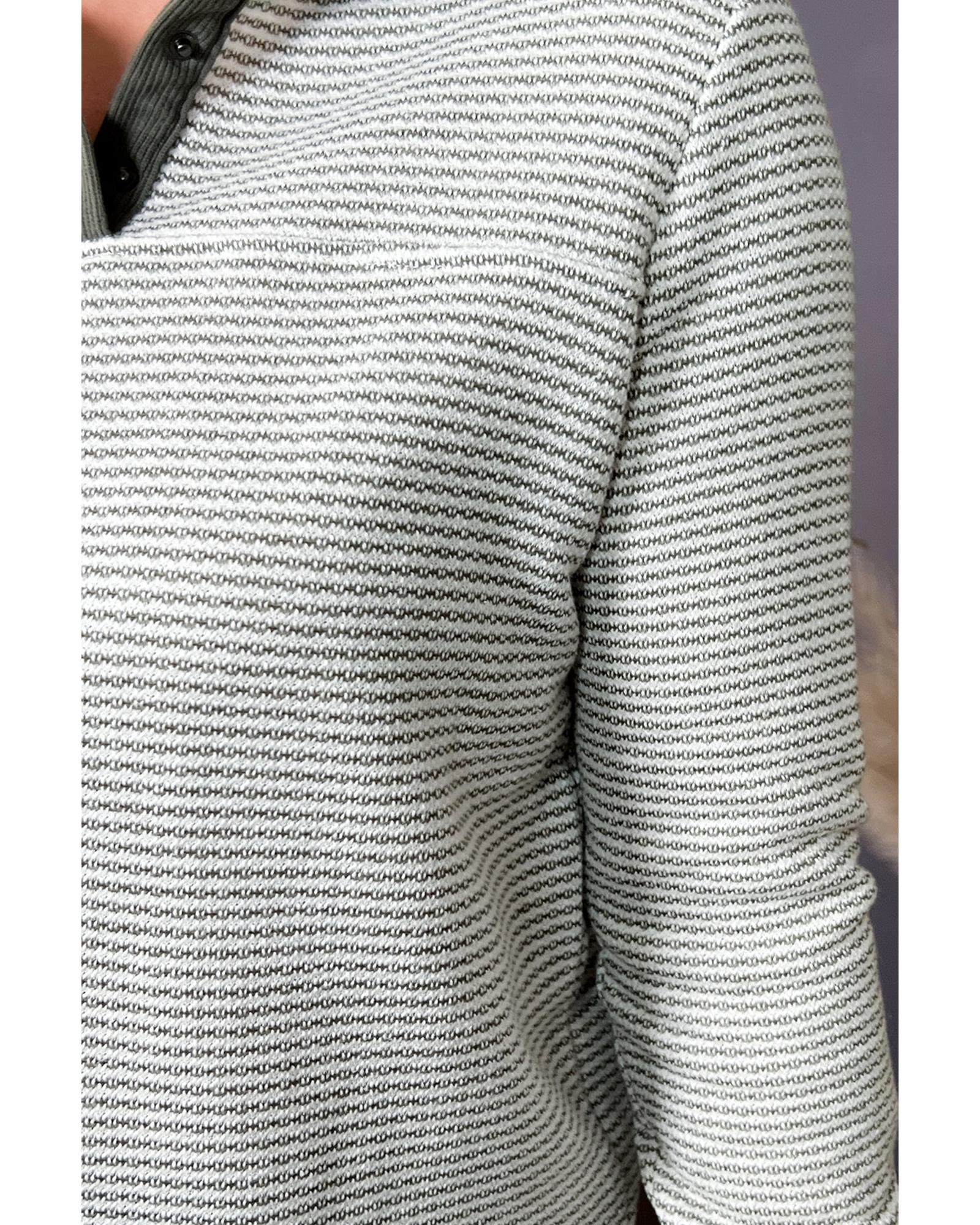 Green Striped Contrasting Trim Plus Size Henley Pullover – 1X