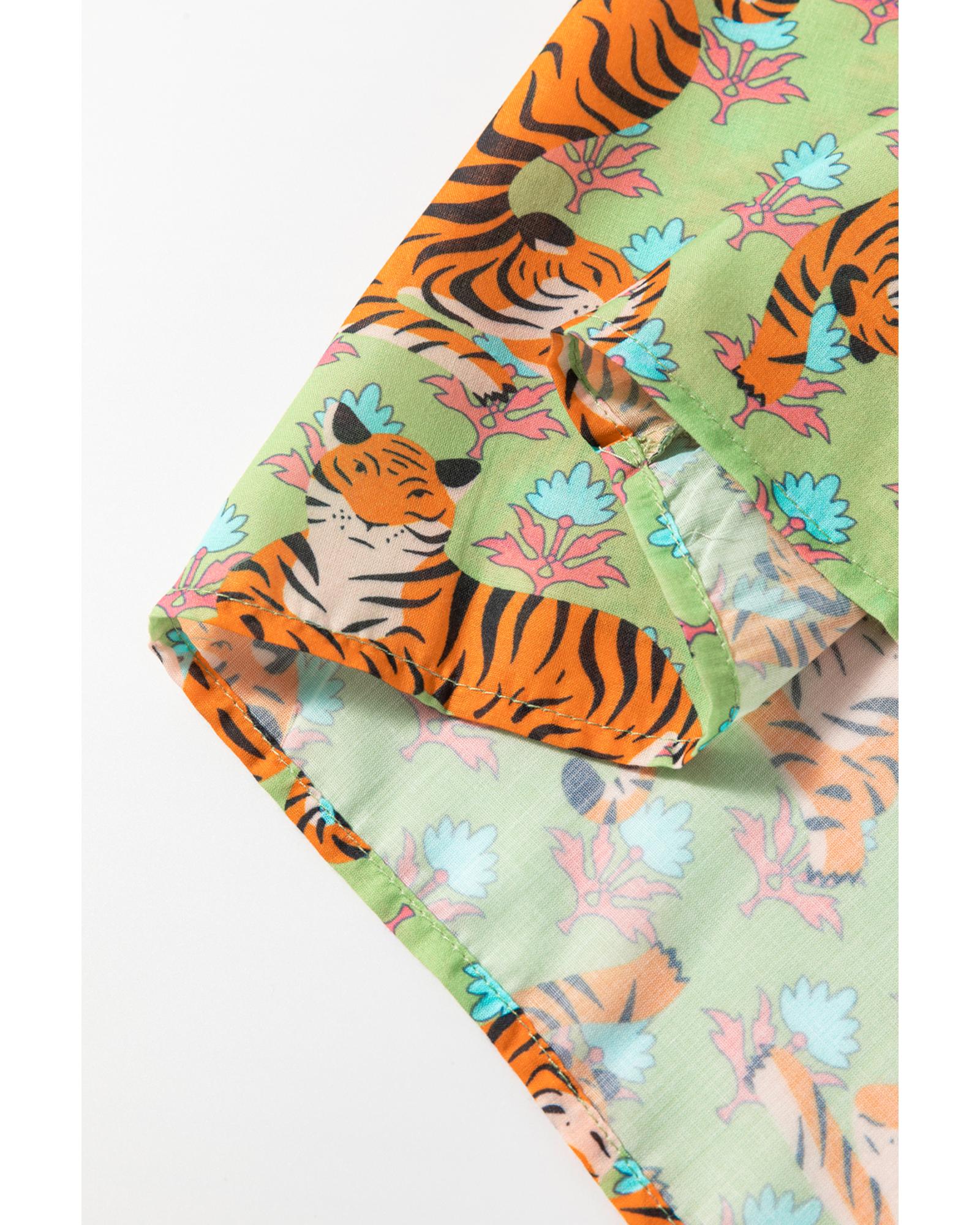 This casual shirt features a vibrant floral and tiger print, designed with a trendy fitted look that offers both style and comfort. It is suitable for everyday wear and provides a relaxed fit for ease of movement.
