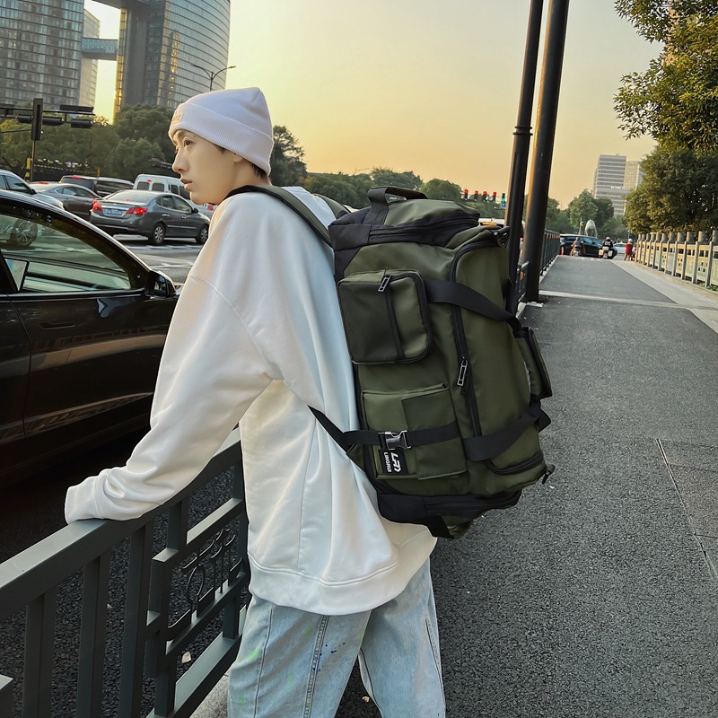 This unisex travel bag combines style and practicality, making it suitable for various travel occasions. It features multiple compartments, including a wet/dry separation pocket, to help organize your belongings efficiently. The durable construction and utility buckles ensure reliable use, while the versatile carrying options provide convenience for users on the go.