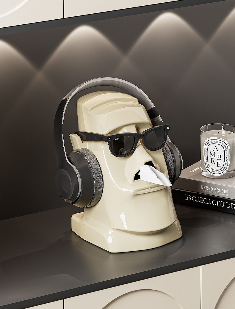 This versatile desktop accessory combines a headphone stand and tissue box in a compact design. Made from durable ABS material, it provides a practical solution for organizing your space while adding a modern touch to your home or office environment.