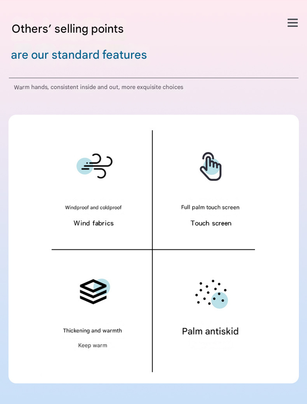 - Features: Thermal insulation, touchscreen compatibility, windproof, anti-slip