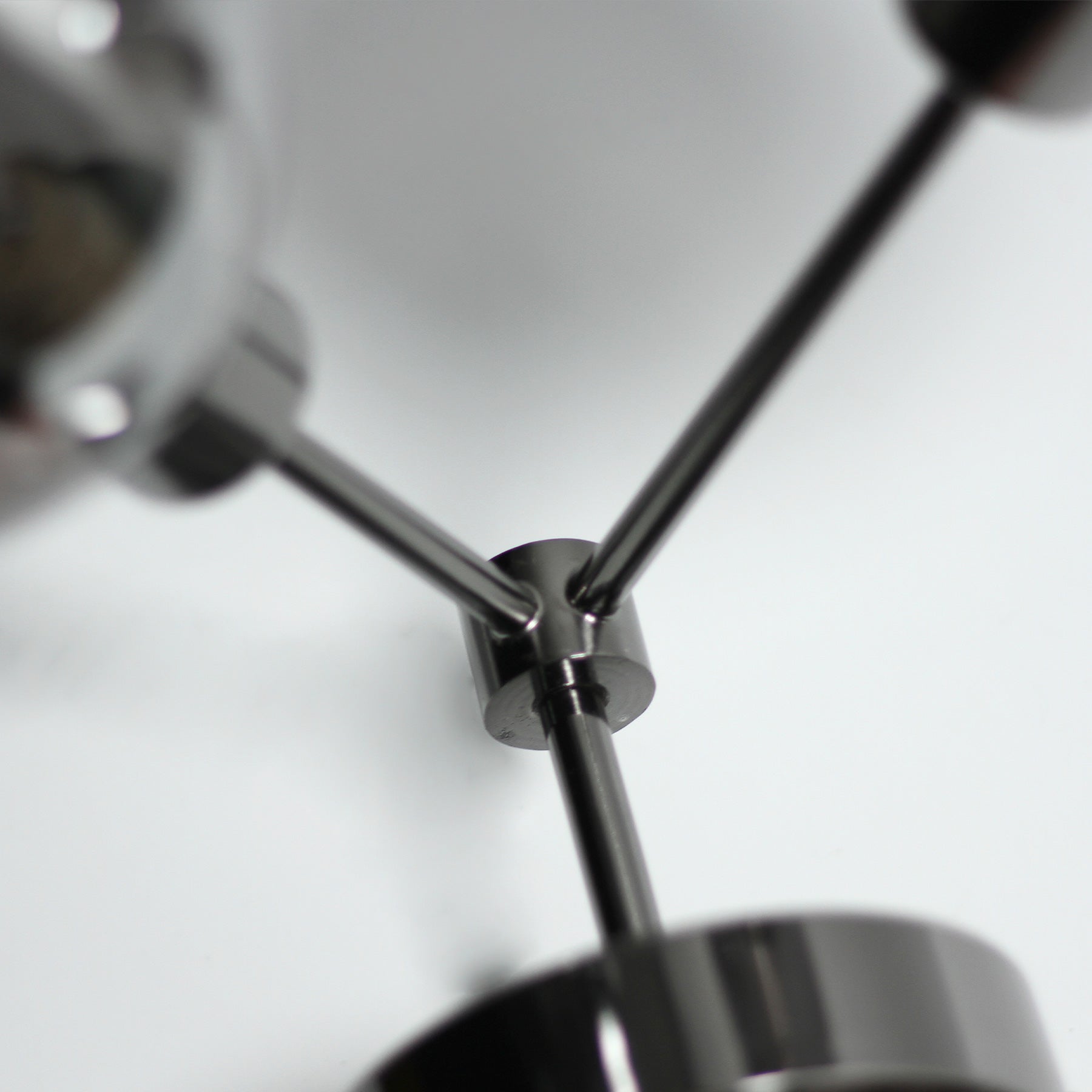 This wall light features a modern design with a black chrome finish, combining a metal frame and glass shade to create a sophisticated look. It is suitable for indoor installation and provides warm lighting to enhance the ambiance of any space.