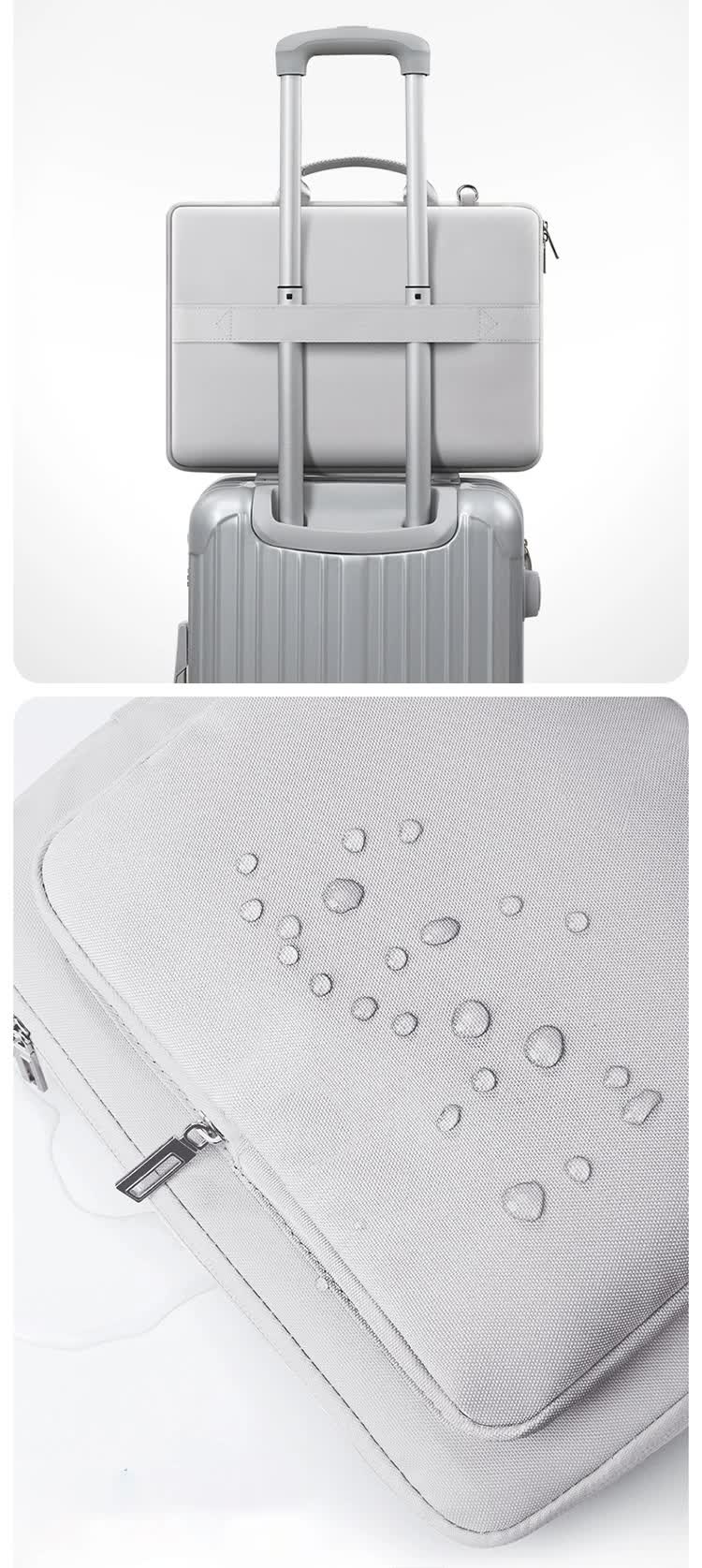 This slim and durable laptop bag is designed to protect your 15.6-inch laptop and accessories while offering a sleek and functional appearance. It features multiple compartments for organization, shockproof padding for safety, and a trolley strap for convenient travel. Its lightweight construction makes it suitable for daily commuting, work, or travel needs.