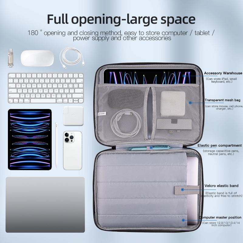 - Large capacity for notebooks, power mice, mobile phones, and more