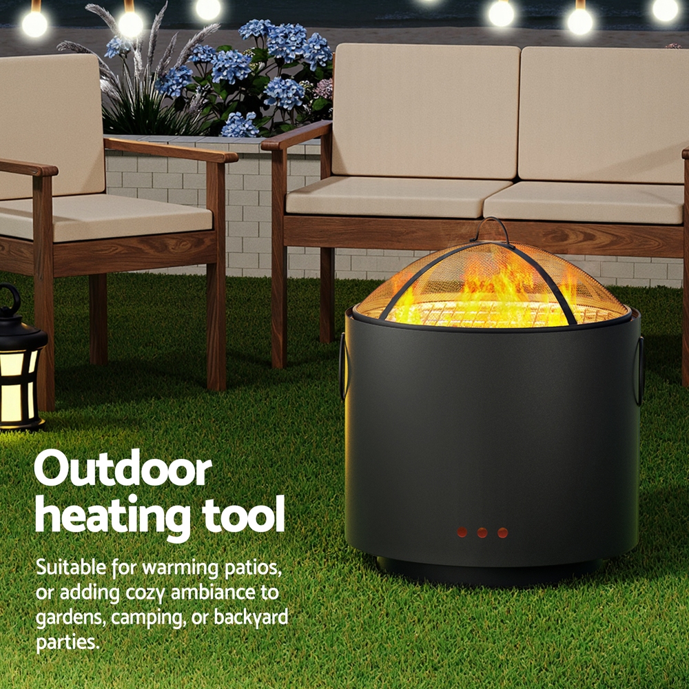 This portable outdoor fire pit combines a deep bowl design with a large grill surface, making it suitable for various outdoor activities such as camping, patio gatherings, and garden parties. Its weather-resistant construction and safety features make it a versatile choice for year-round use, from cozy winter marshmallow roasts to summer barbecues.