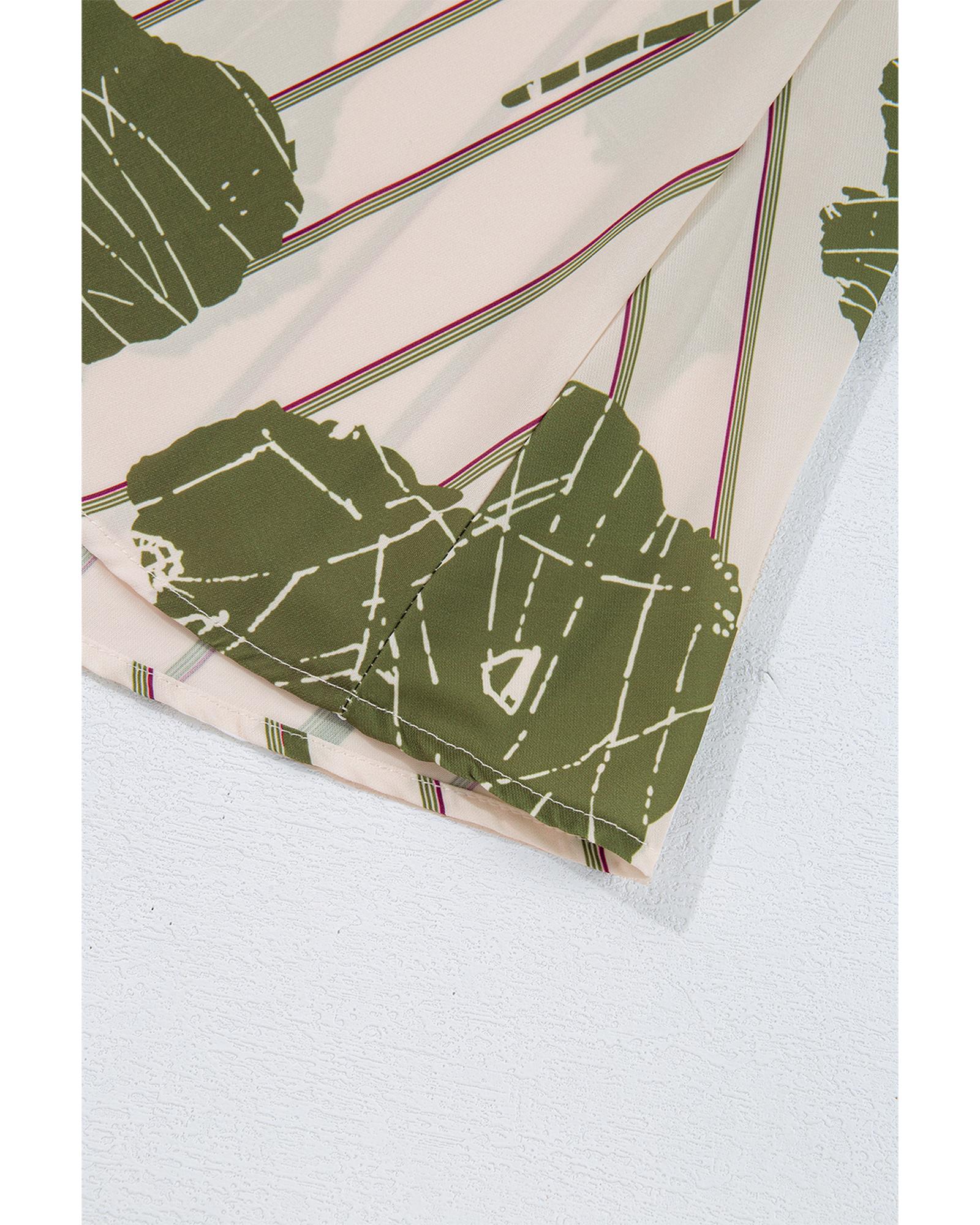 This dress features a vibrant green floral print with a striped background, designed with a trendy fitted silhouette. It combines a playful and stylish look suitable for various occasions, from casual outings to special events.