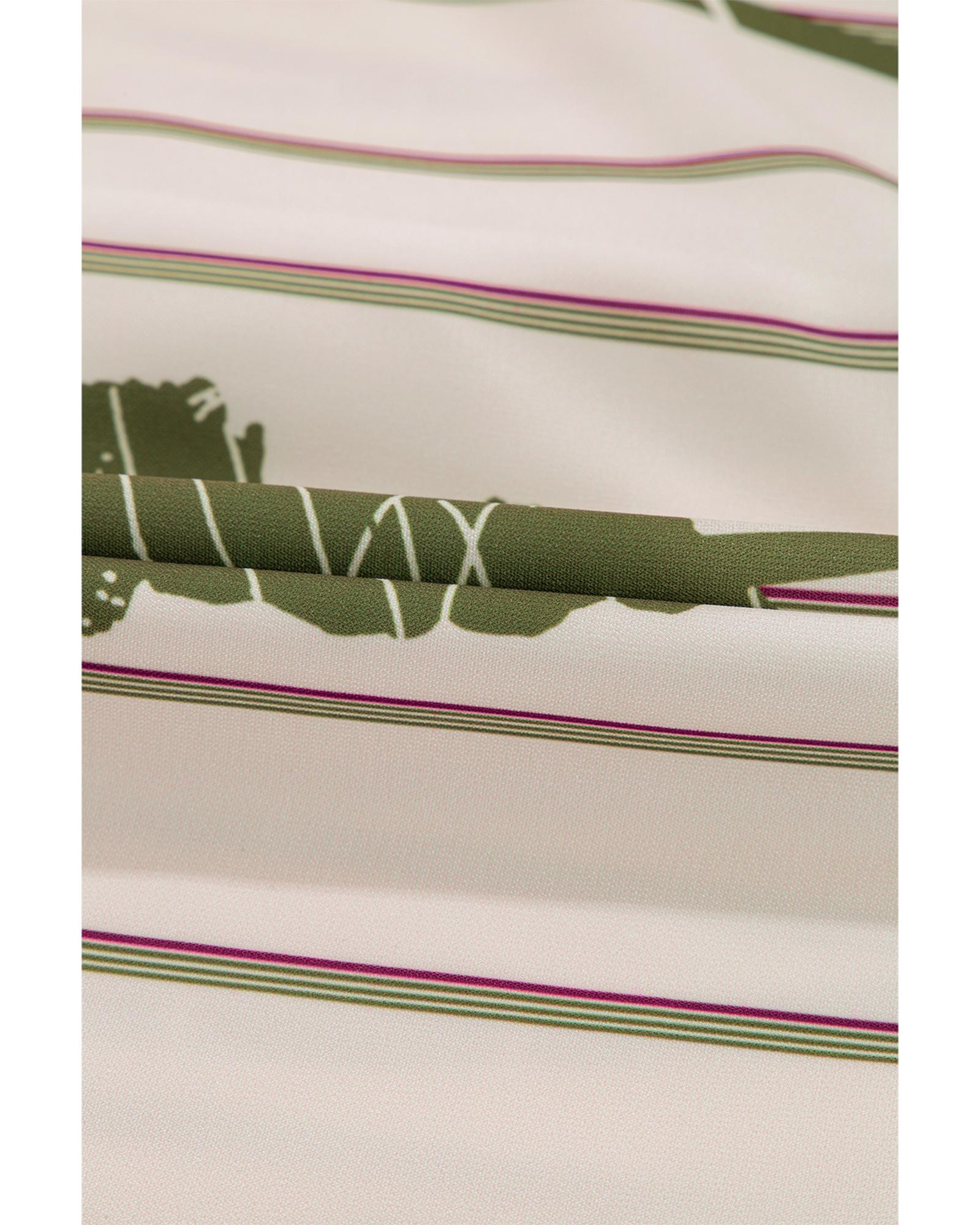 - Vibrant green floral print with striped background