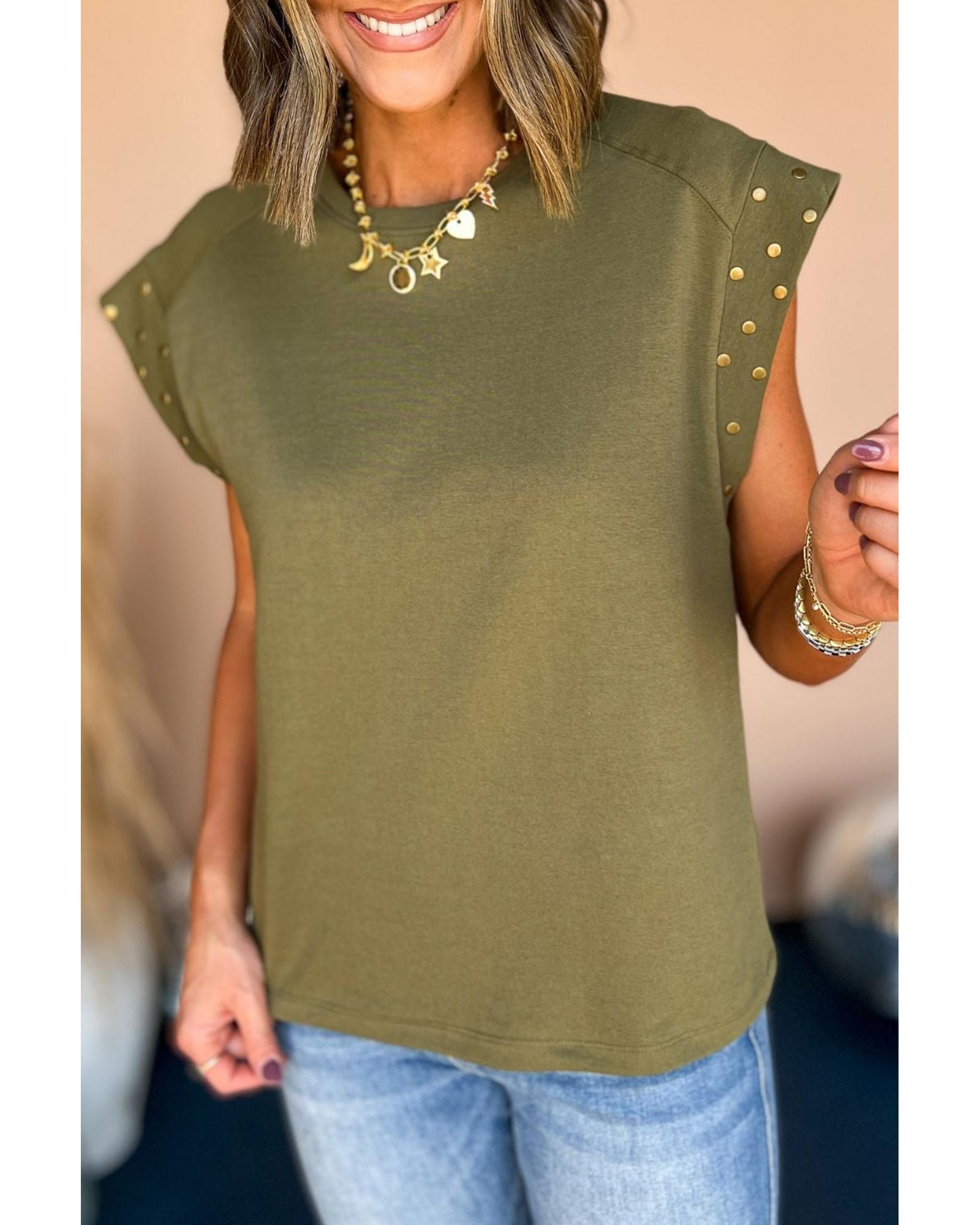 Guacamole Green Studded Short Sleeve Top – M