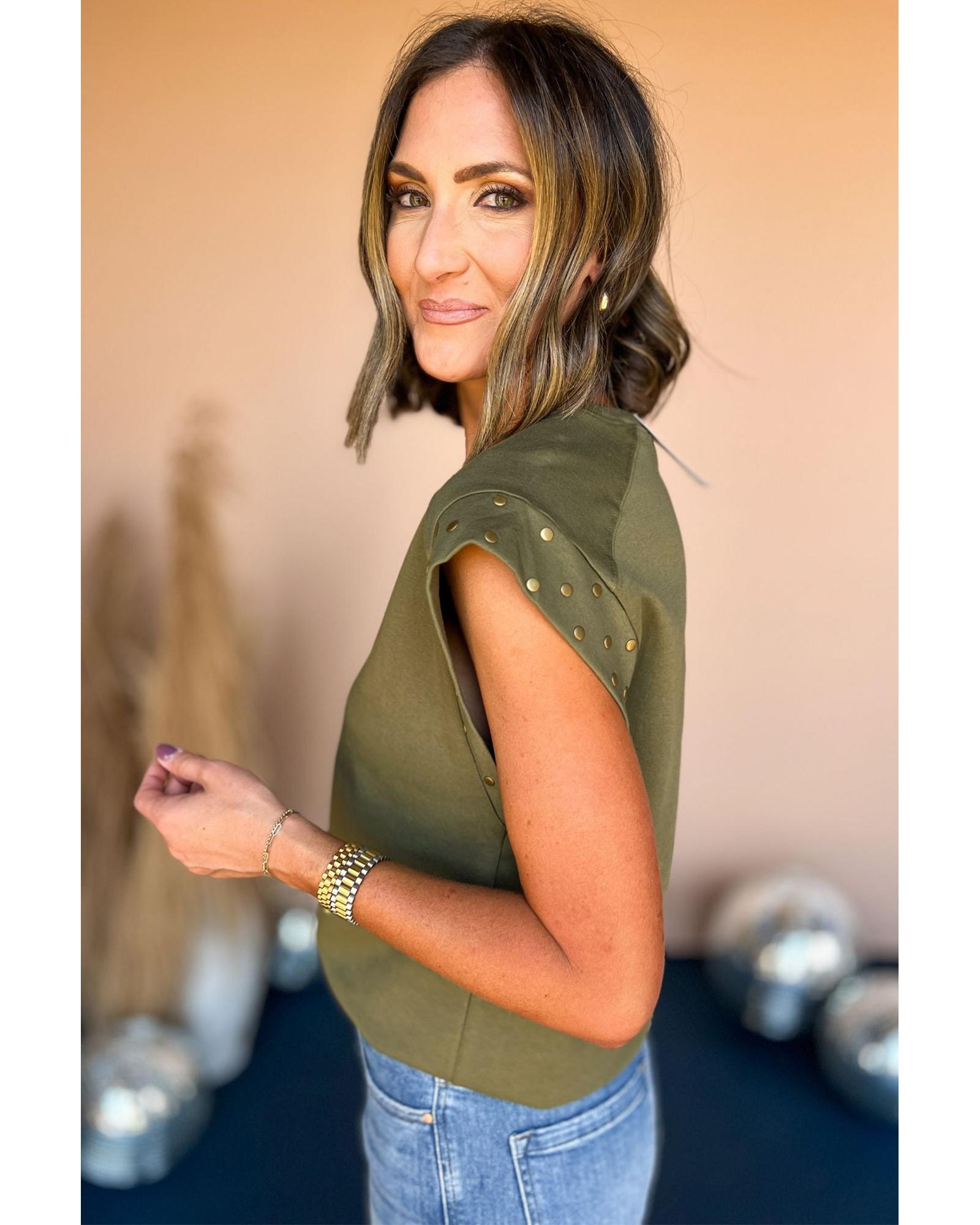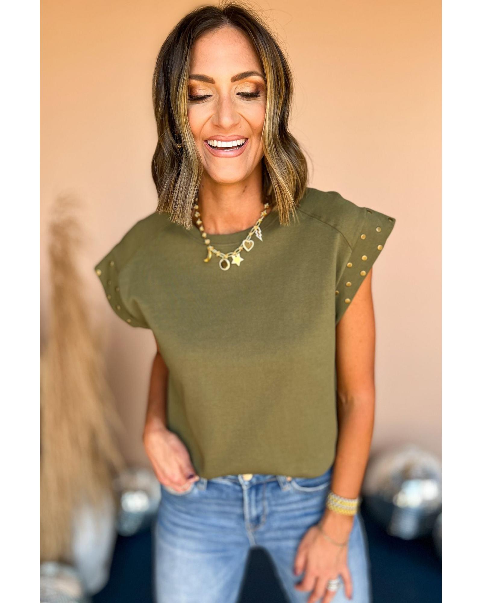 Guacamole Green Studded Short Sleeve Top – XL